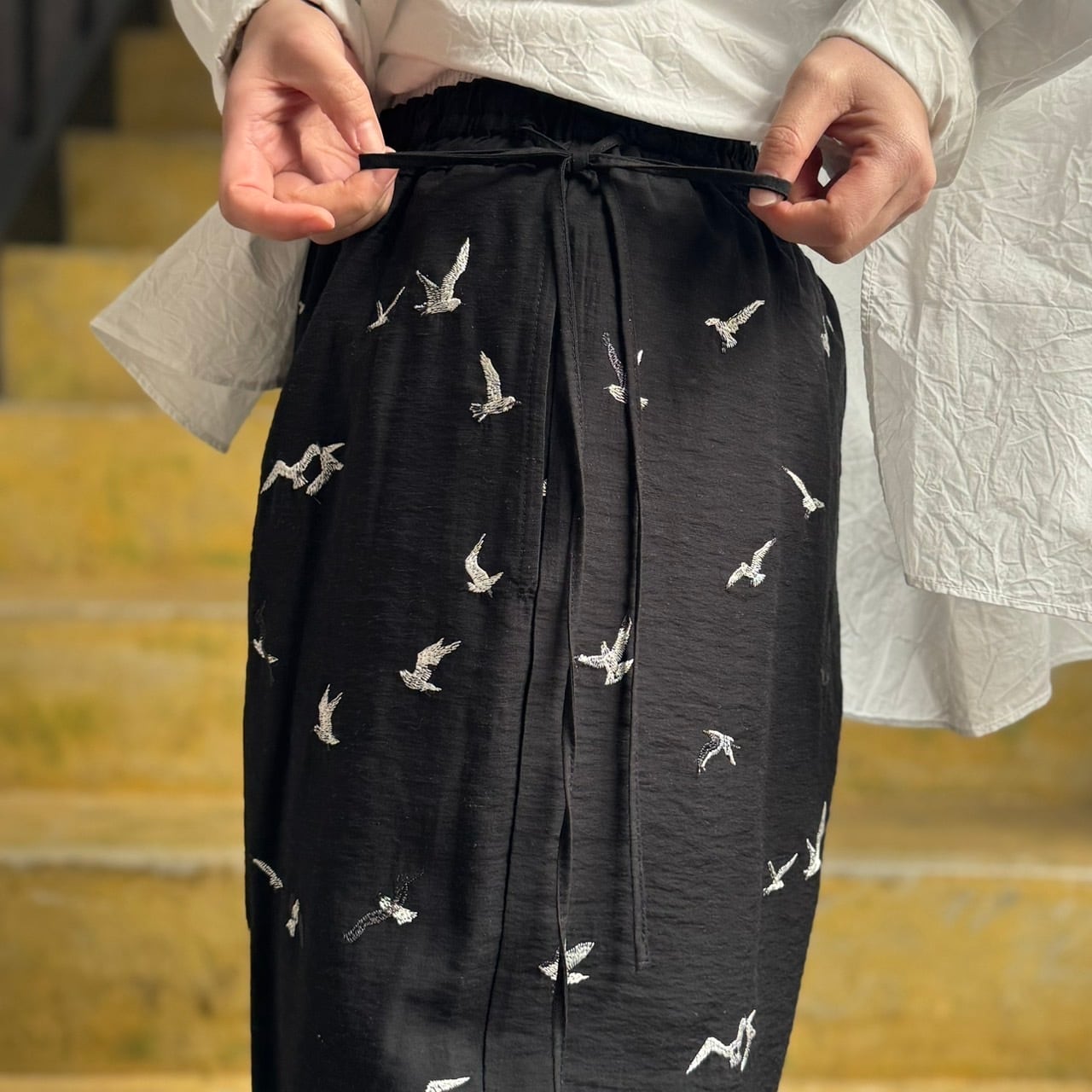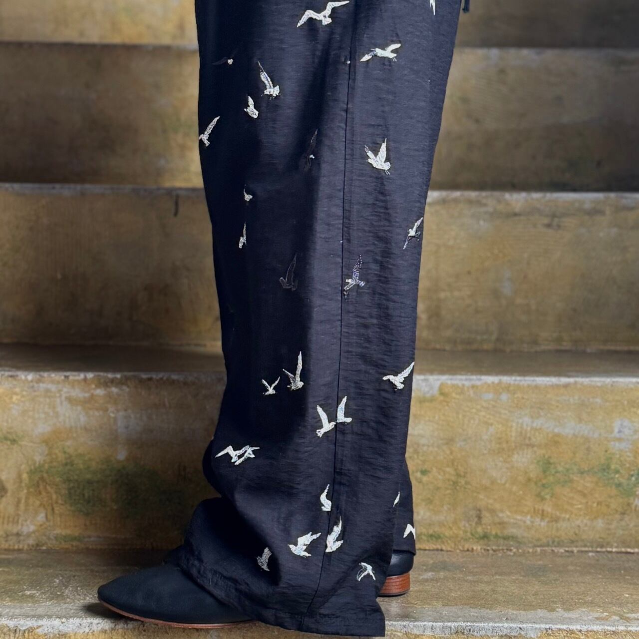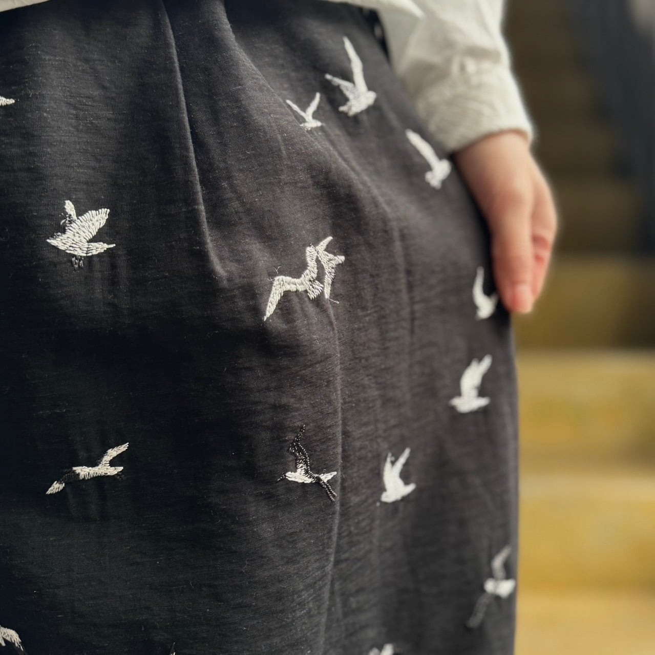 刺繍機の限界まで柄を広げて、大きく羽を広げた鳥たちを