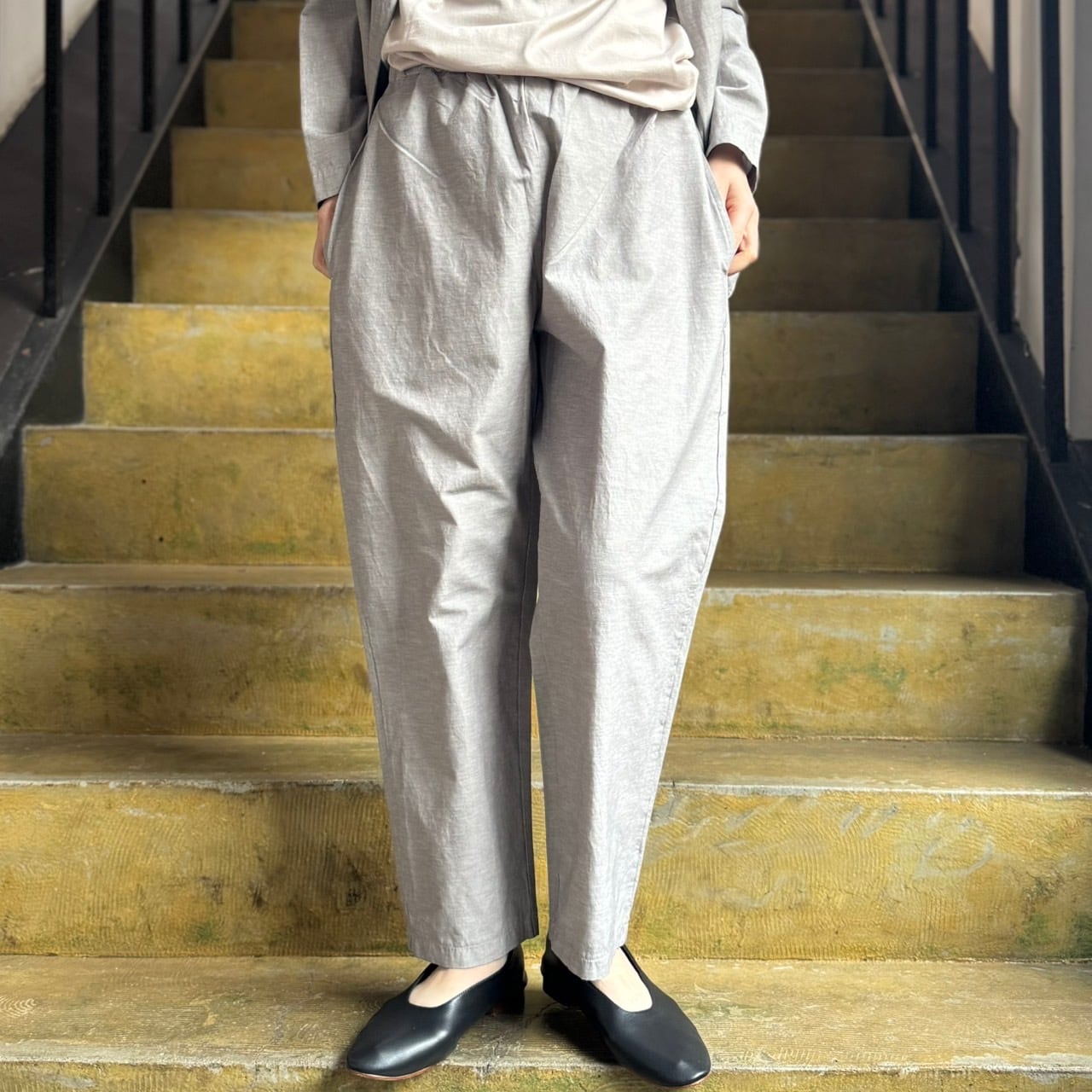 すっきり見えするテーパードパンツの入荷です。