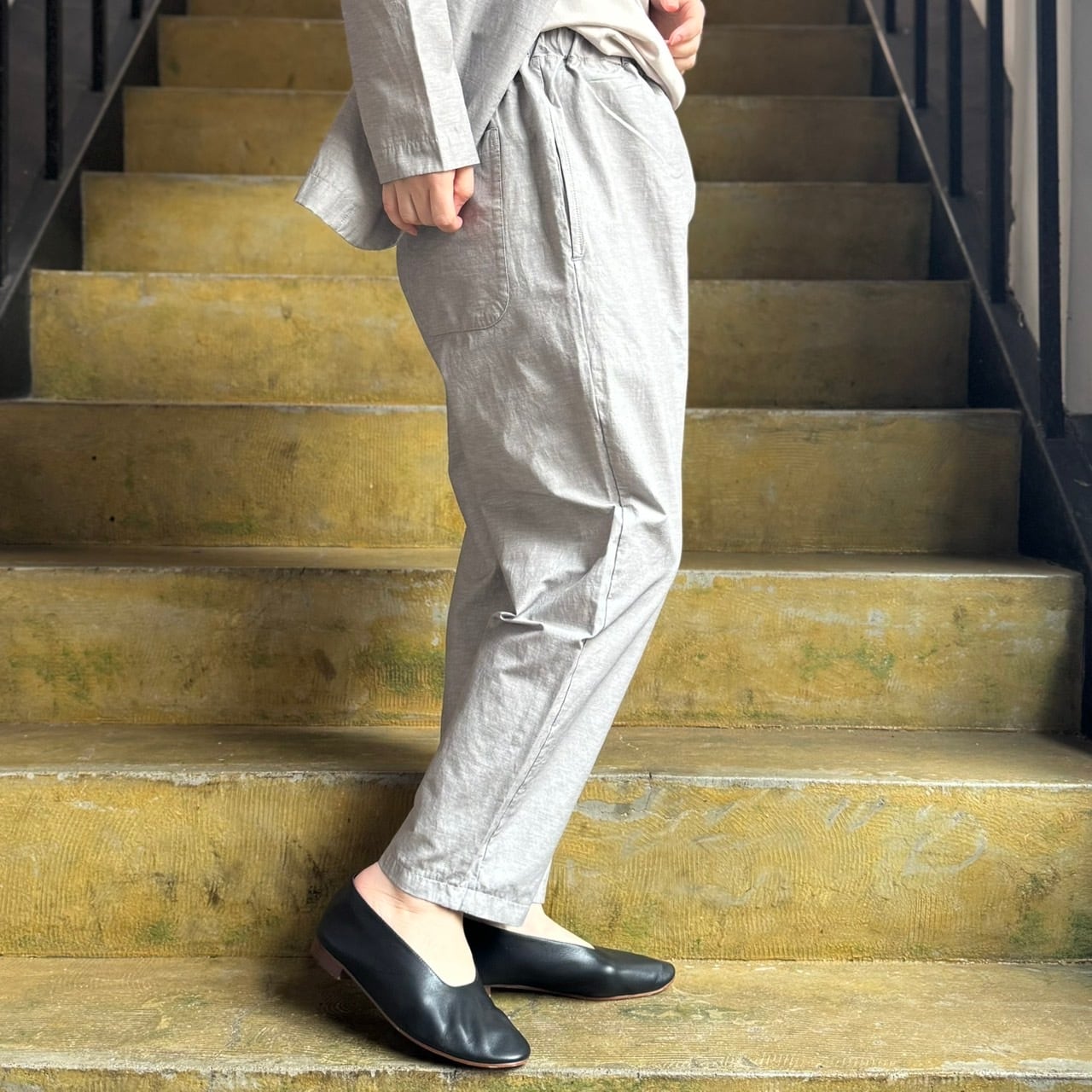 薄手な綿麻素材にストレッチの入ったストレスフリーな生地感となっています。