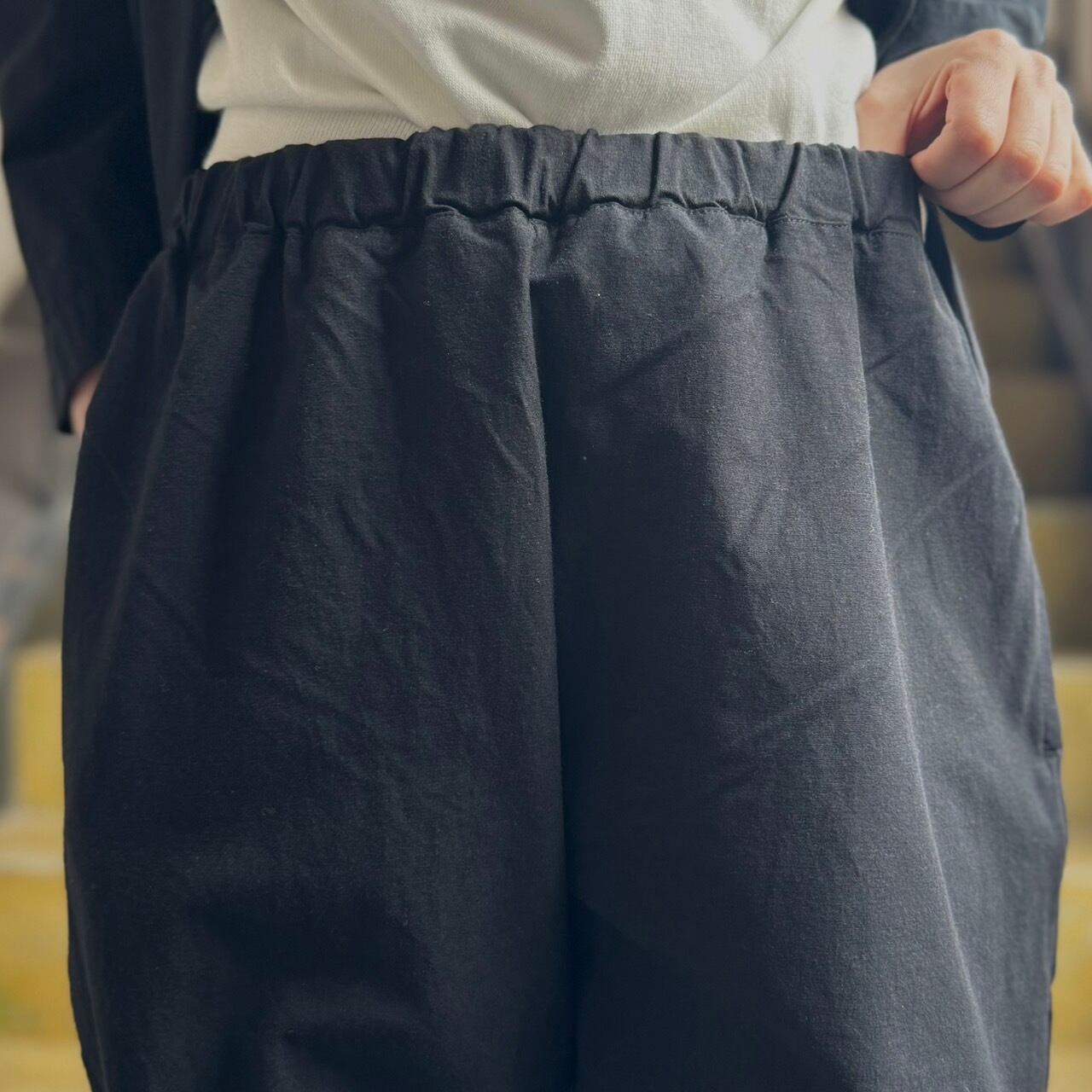 ウエストは総ゴムに内側にドローコード付きのパンツです。