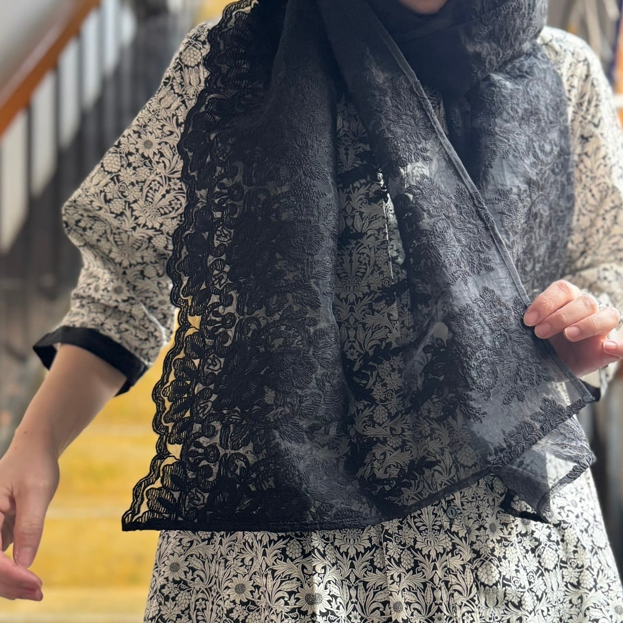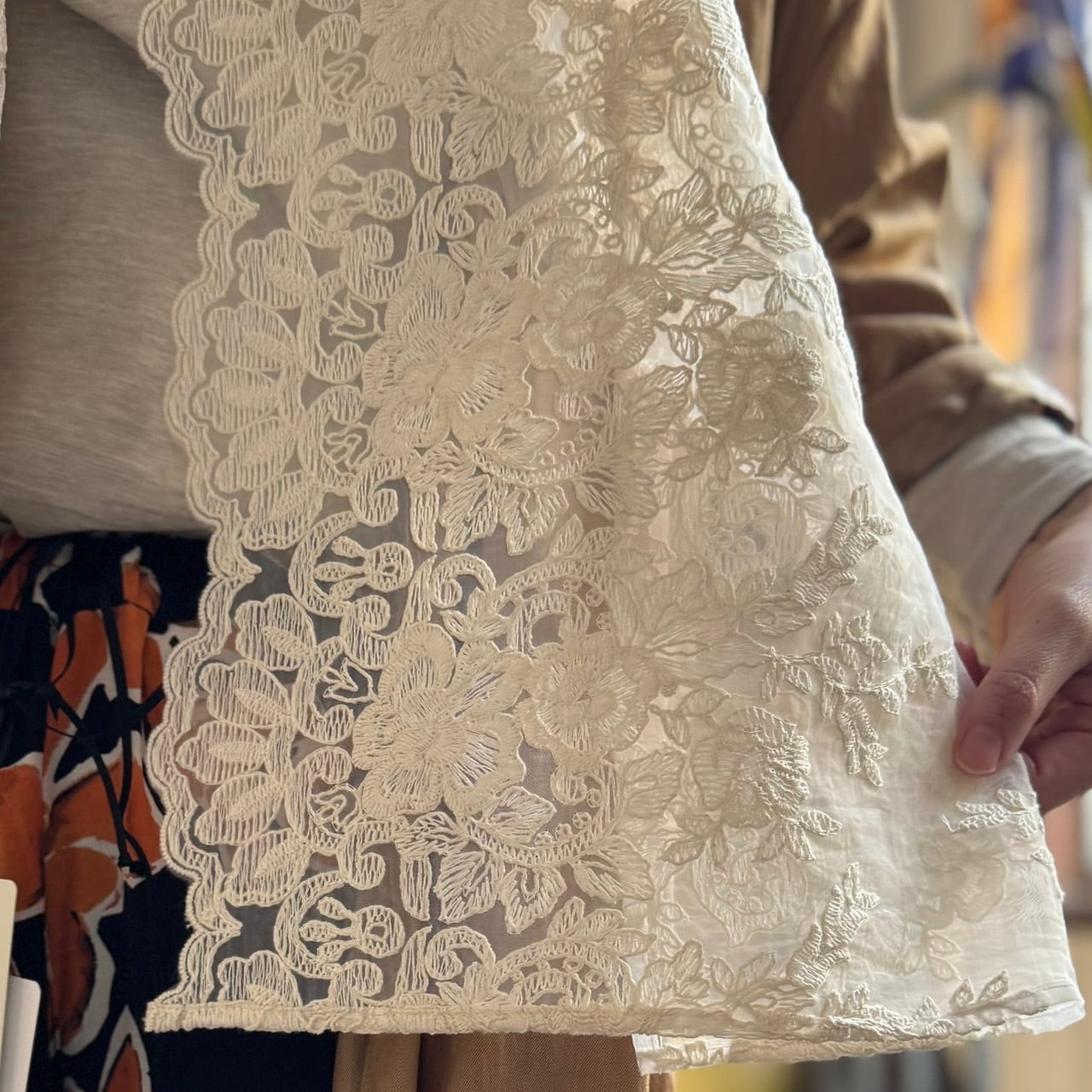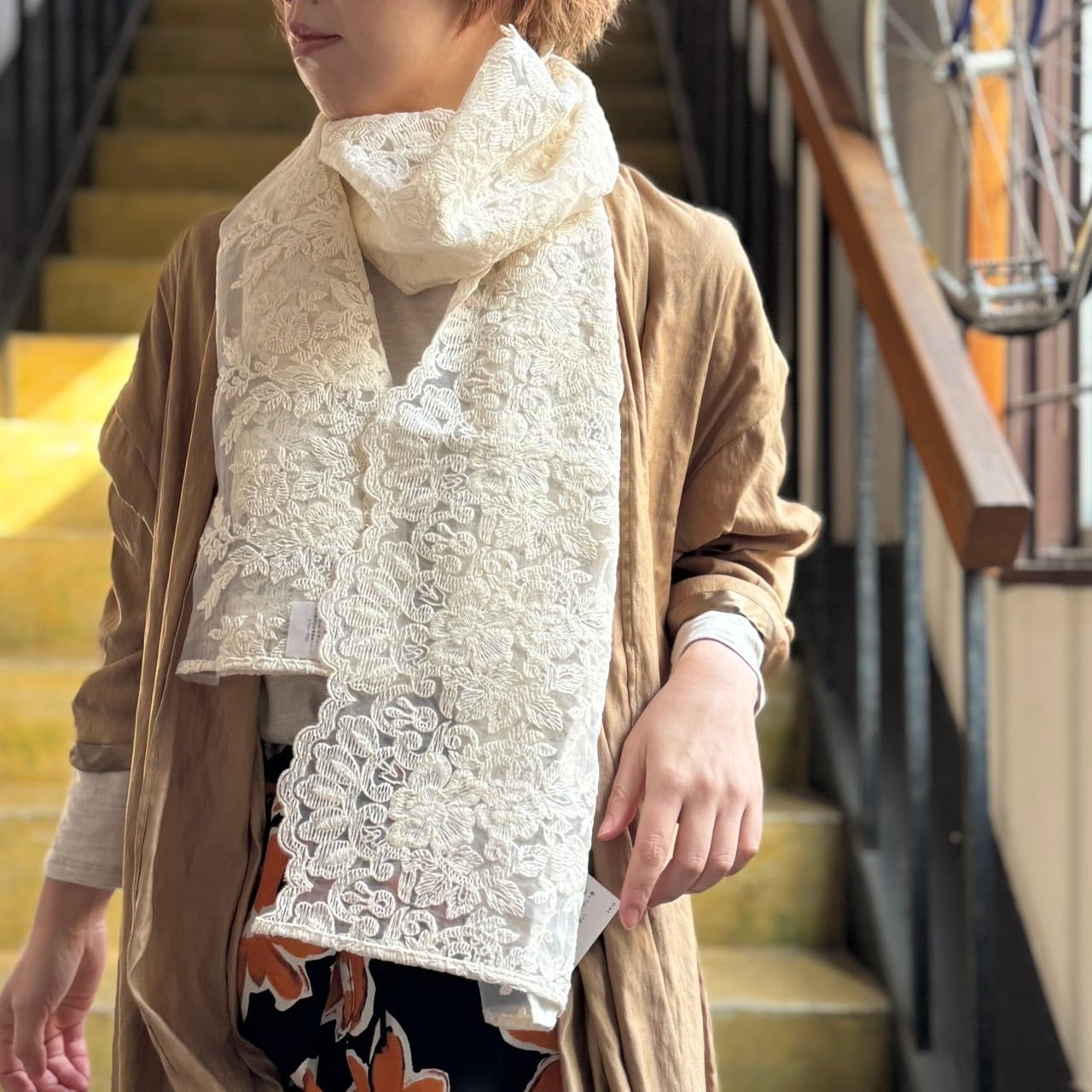 大きすぎないサイズ感のストールです。