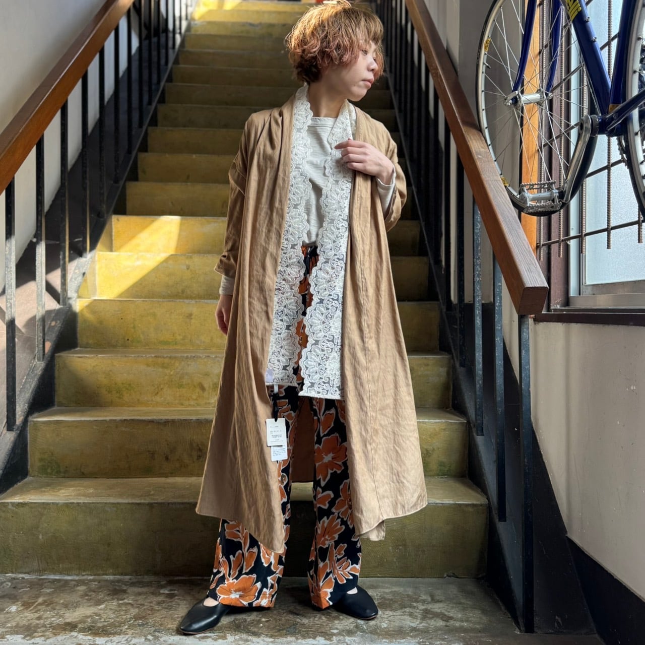 シンプルなTシャツやローブからチラリ覗かせコーデで