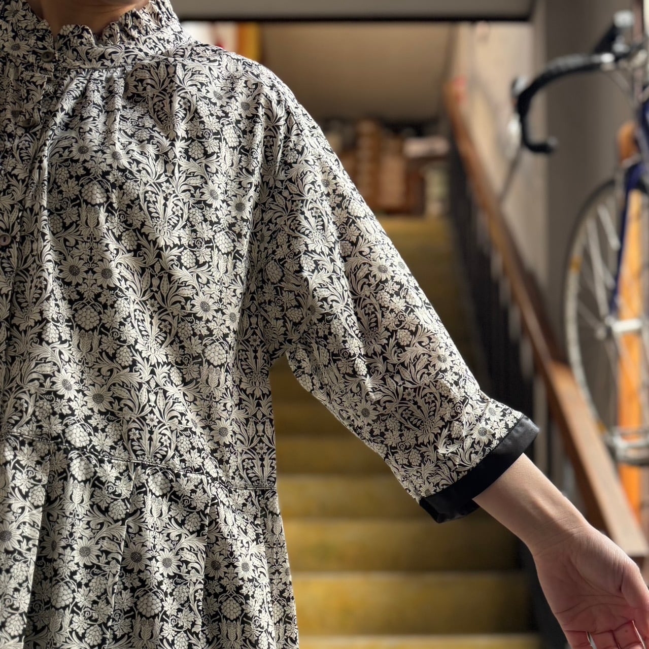 シックだけど華やかさもあるリバティープリントを使用した上品なワンピースです。