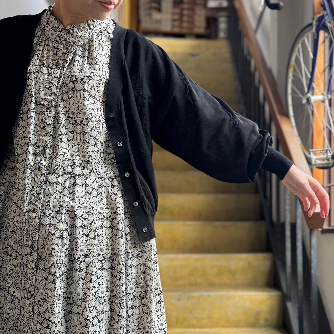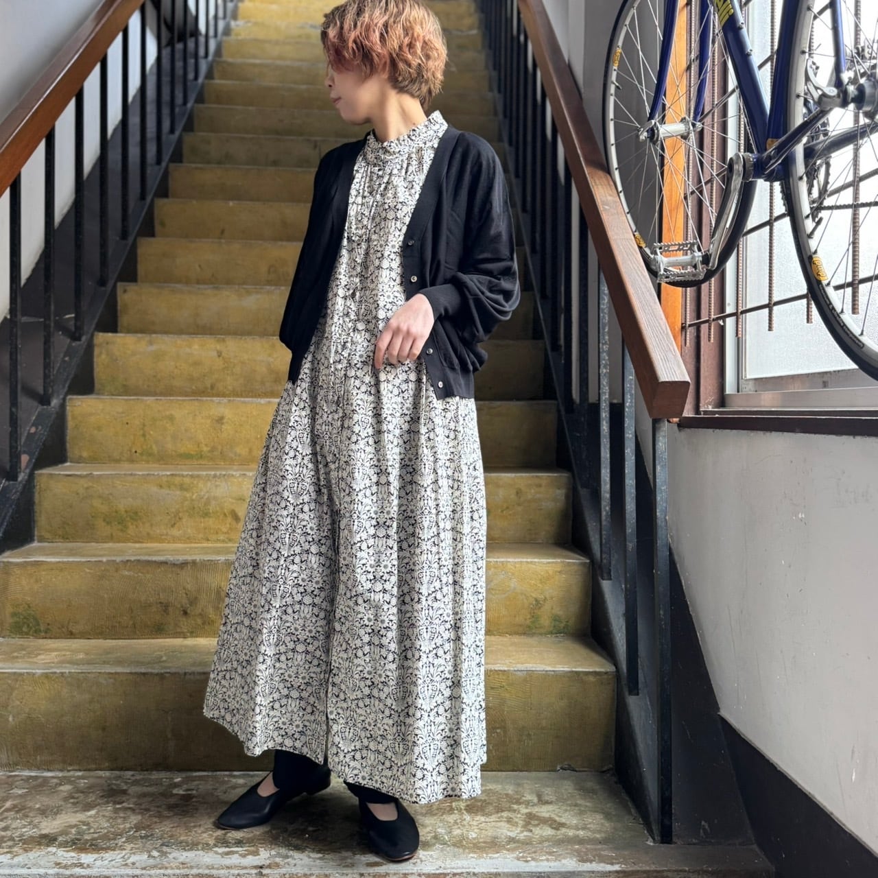 小花柄でも大柄でもない淡色のプリントはお花モチーフにしては甘さ控えめで