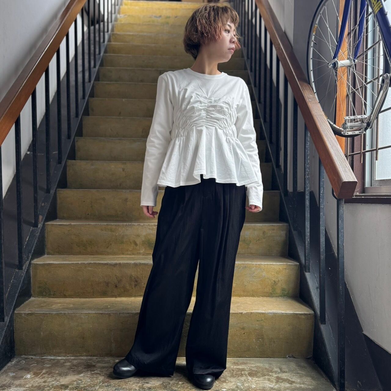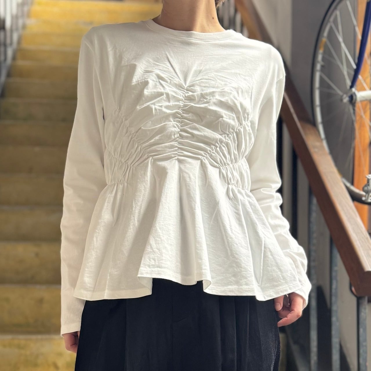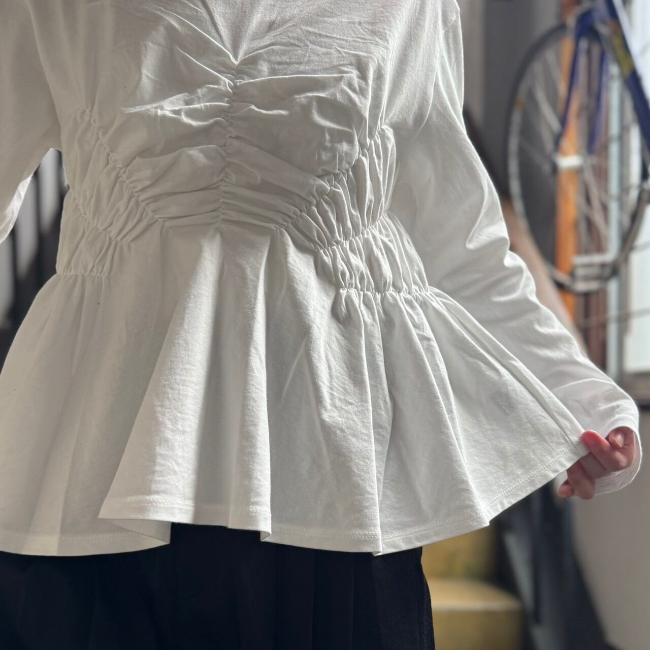 程良いカジュアル感と綺麗さを兼ね備えたシャーリングデザインの春カットソーです。