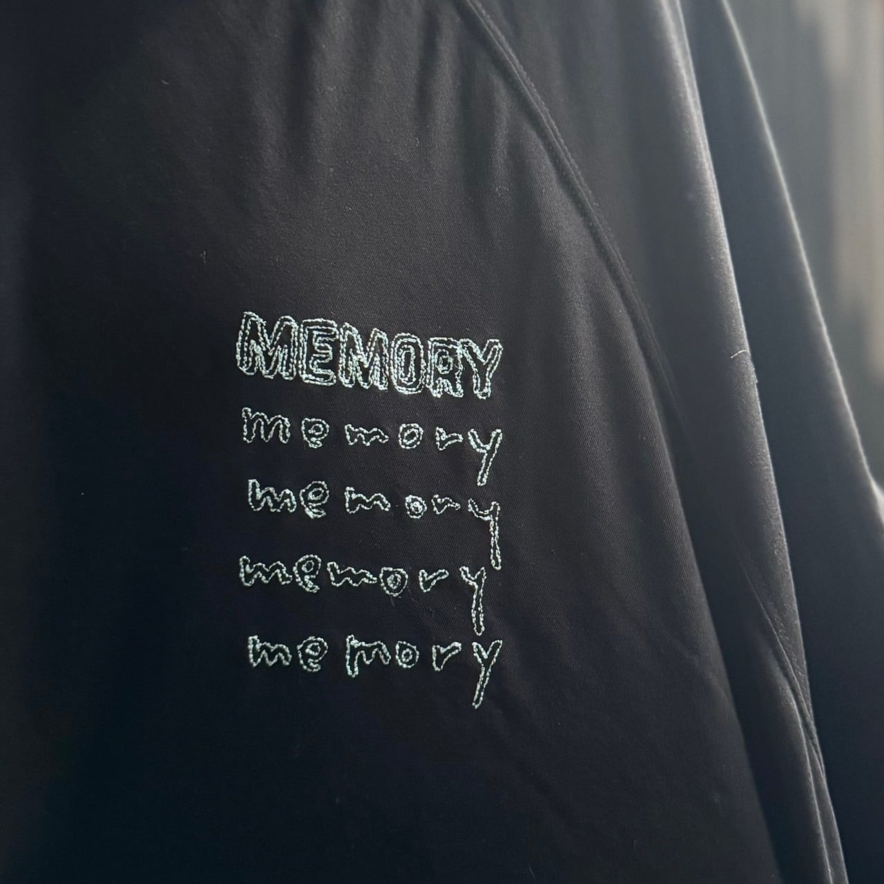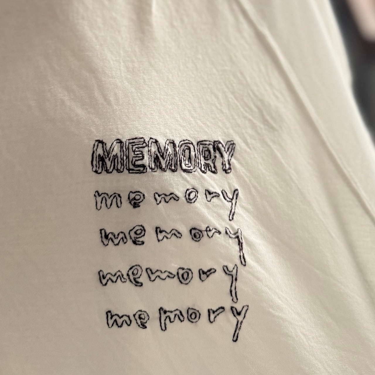 ひょろひょろっとした可愛い雰囲気手書き文字刺繍「memory」を入れた