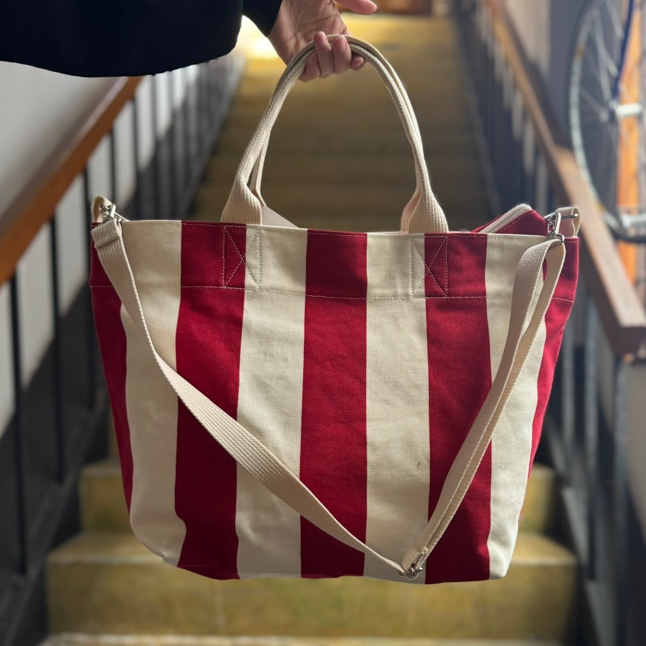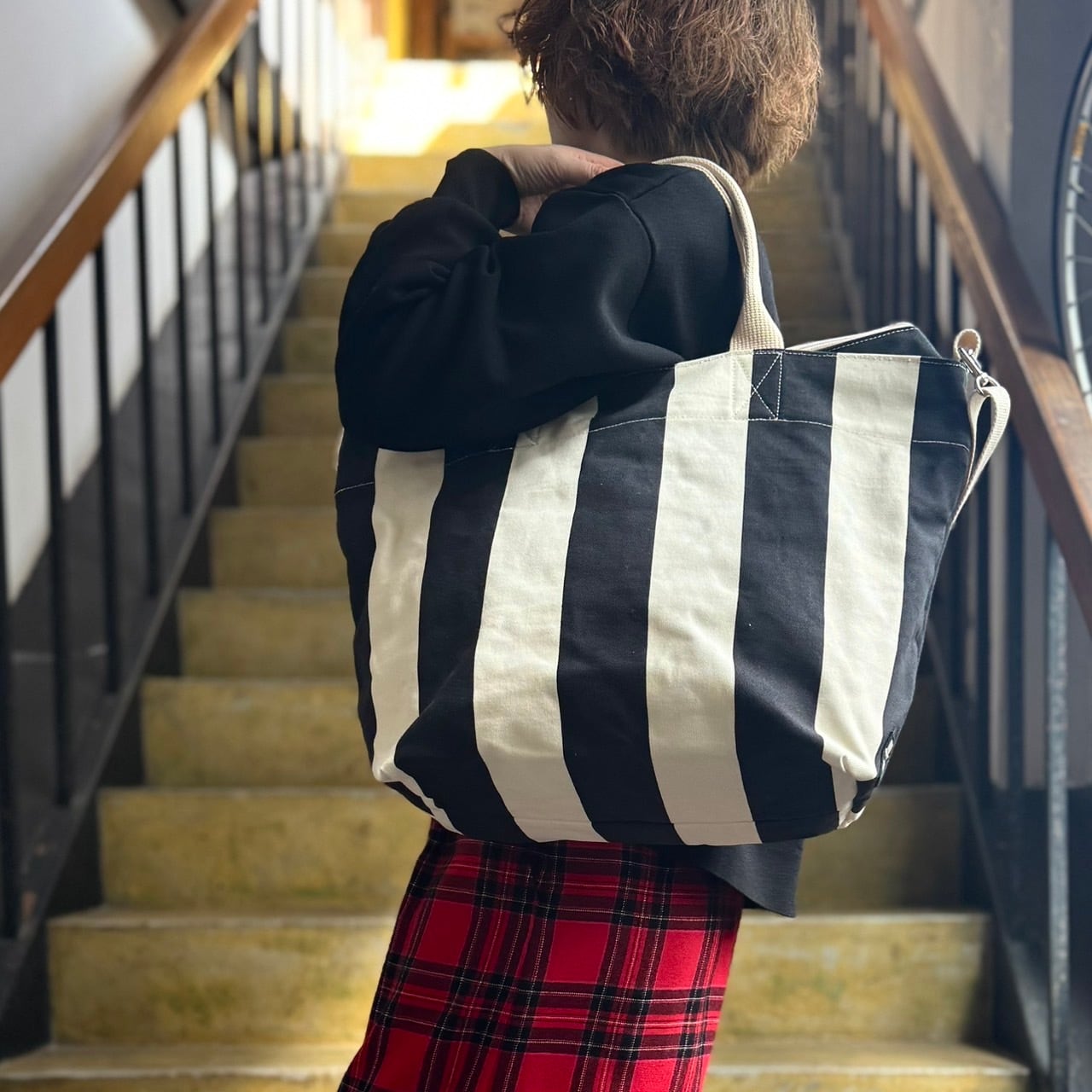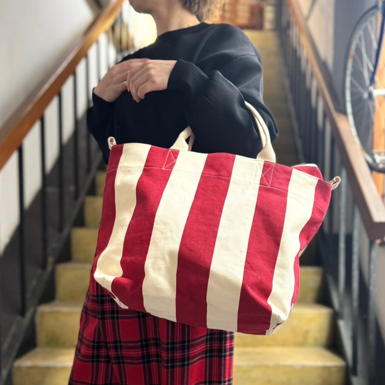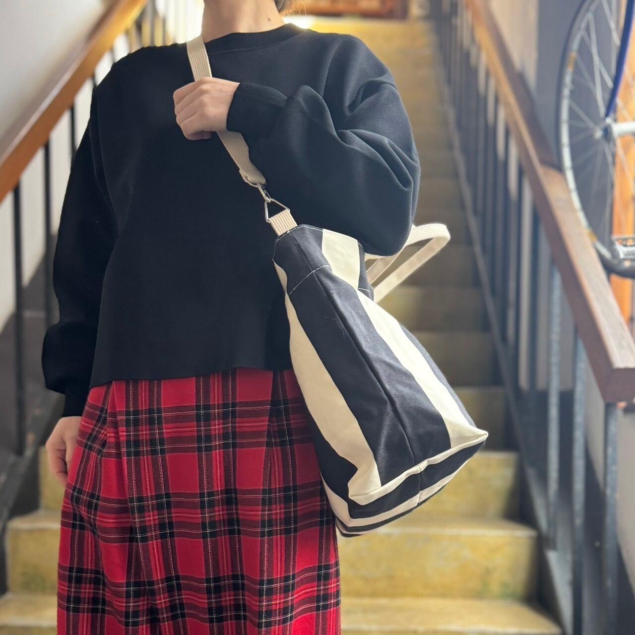 手持ちハンドルとショルダーストラップが付いた2wayタイプのトートバッグになっています。