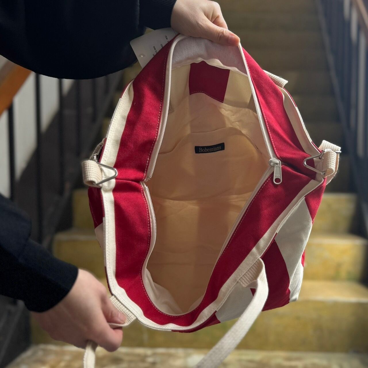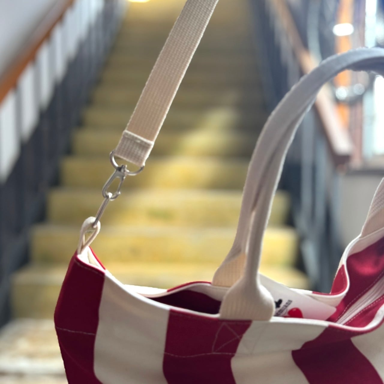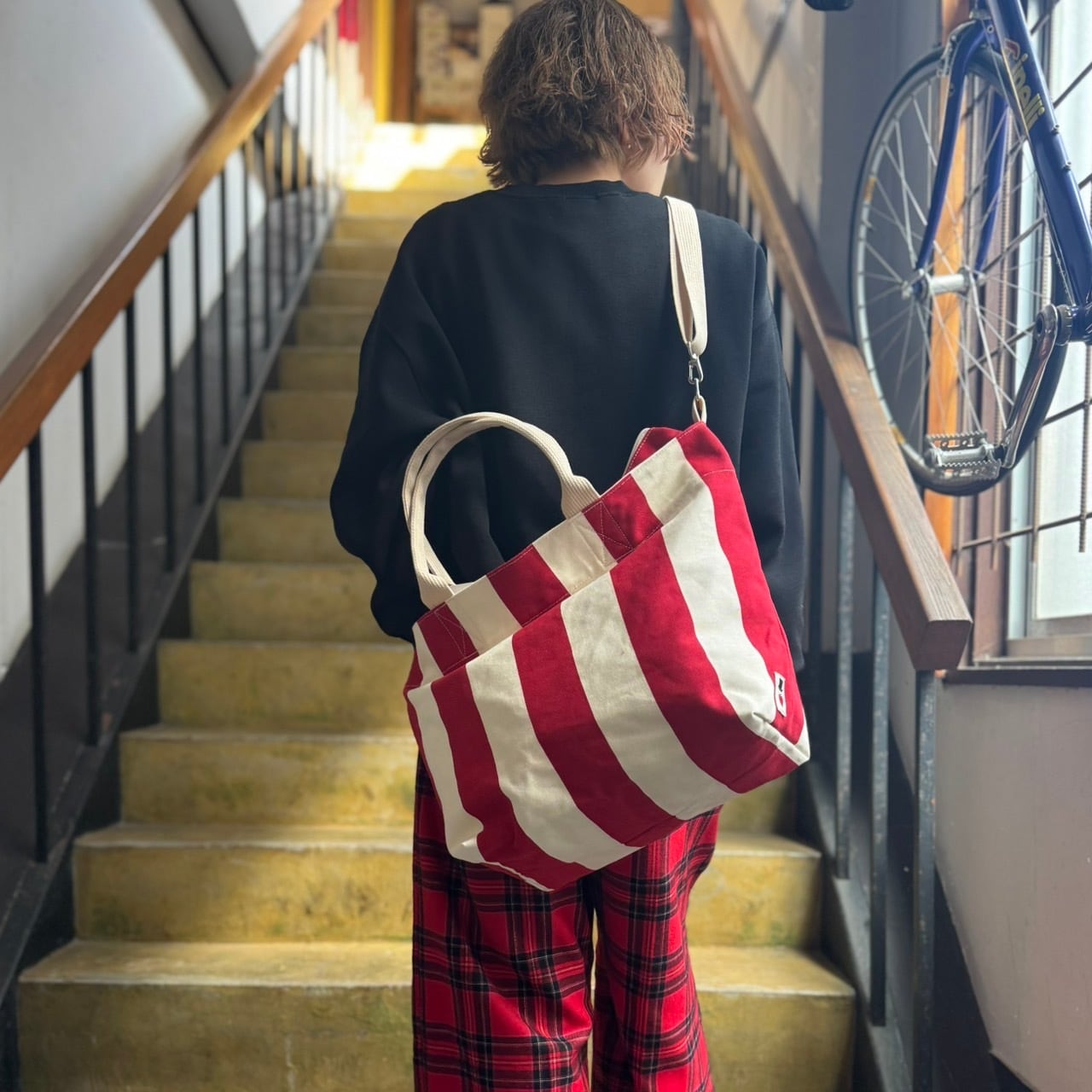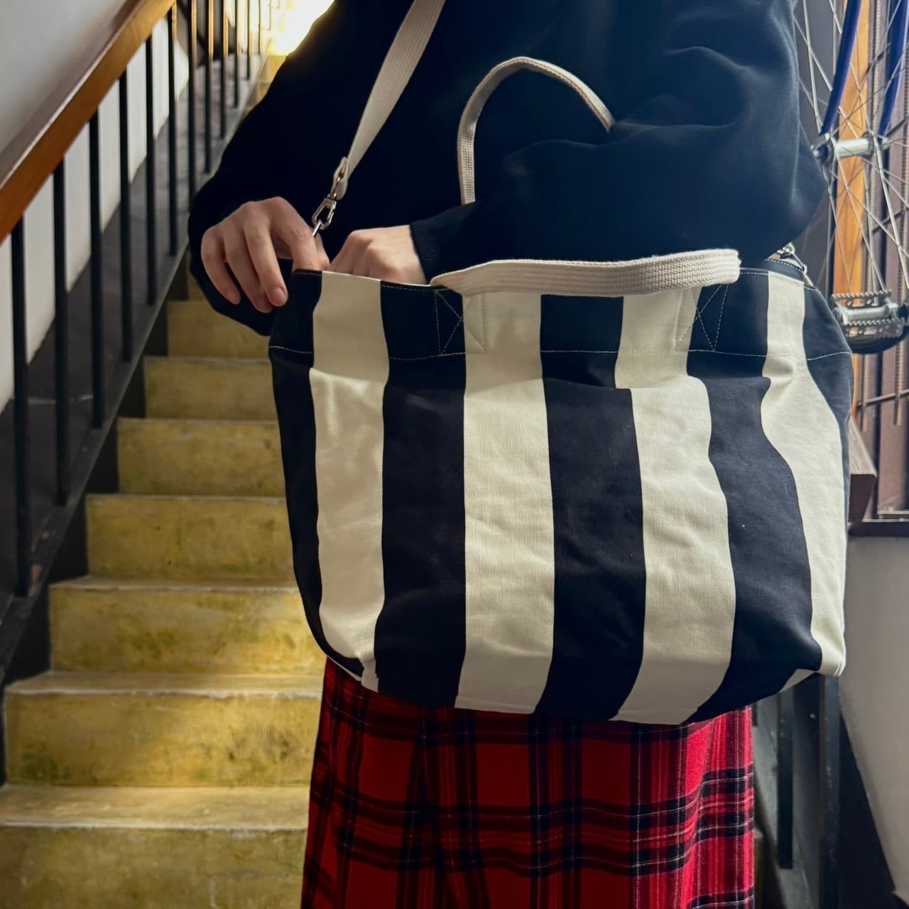 手持ちハンドルとショルダーストラップが付いた2wayタイプのトートバッグになっています。