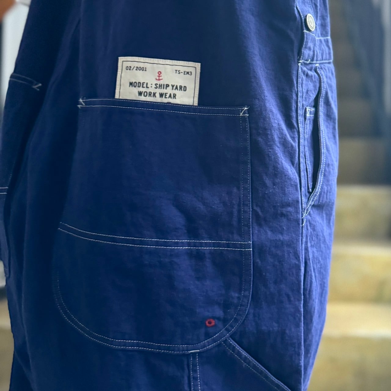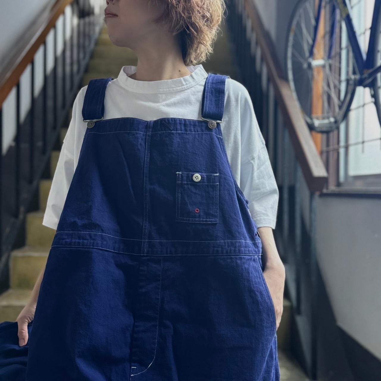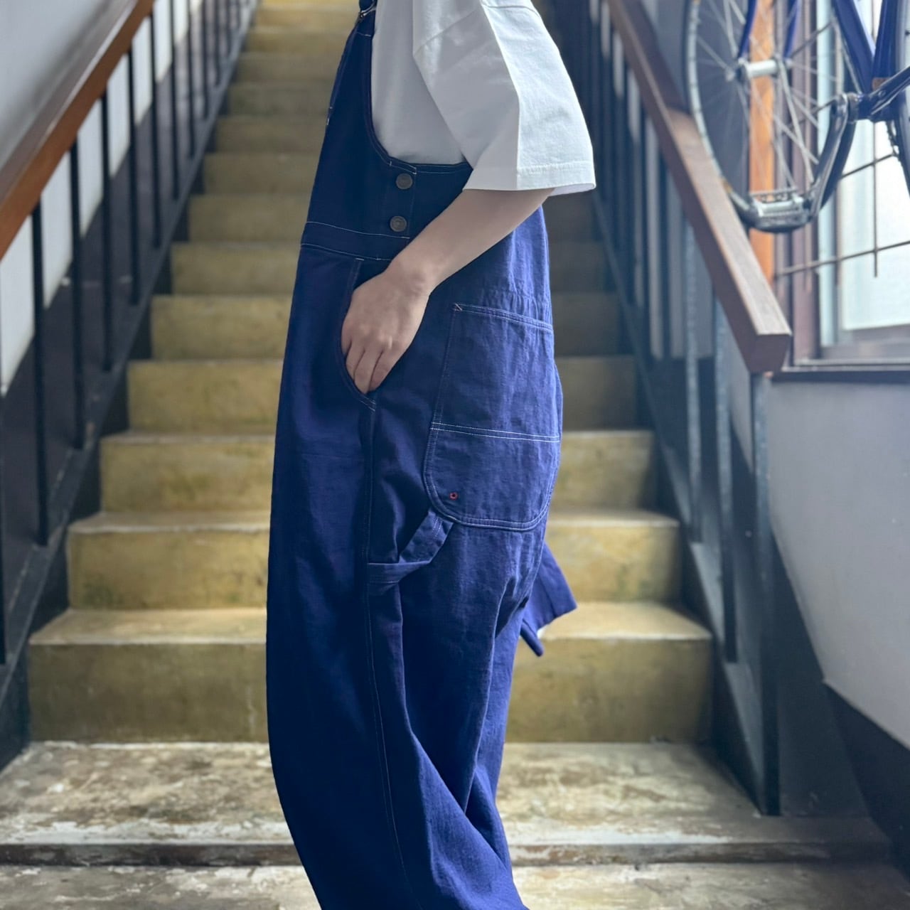 マリンテイストな雰囲気にぴったりなラピスラズリカラーのオーバーオールです。