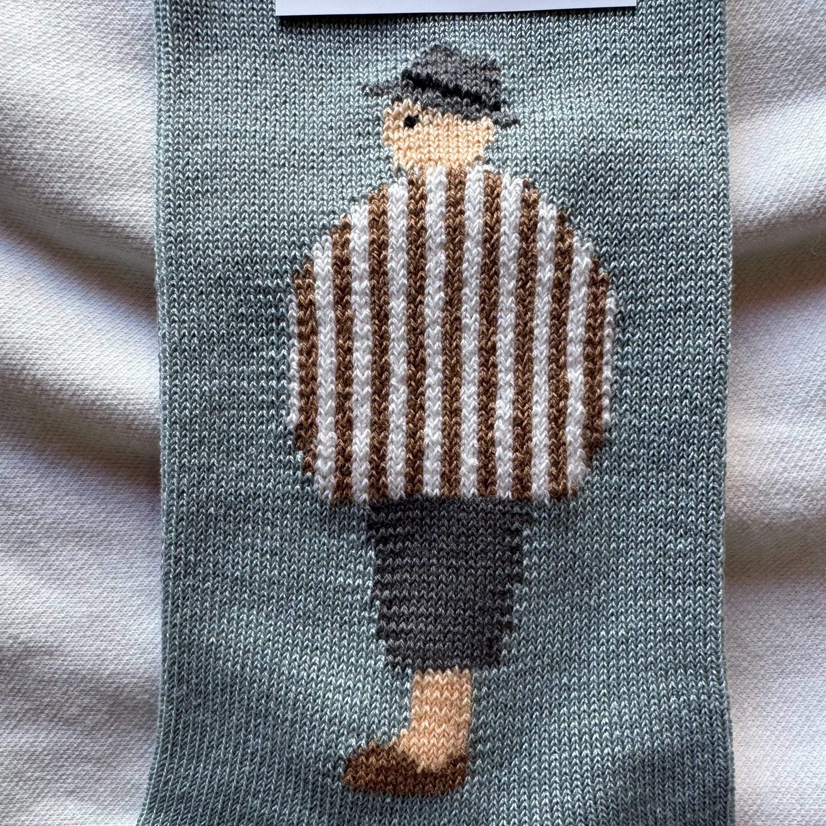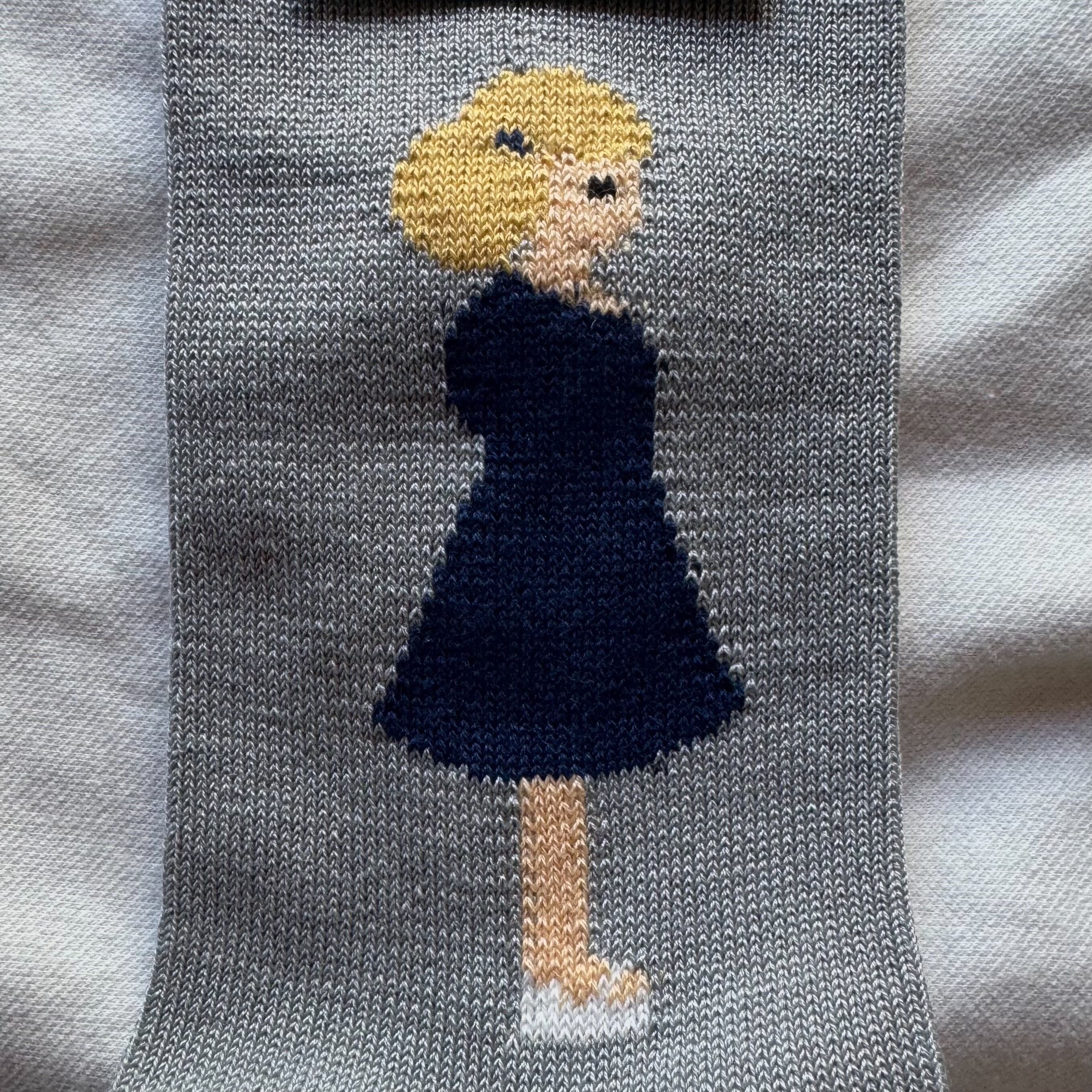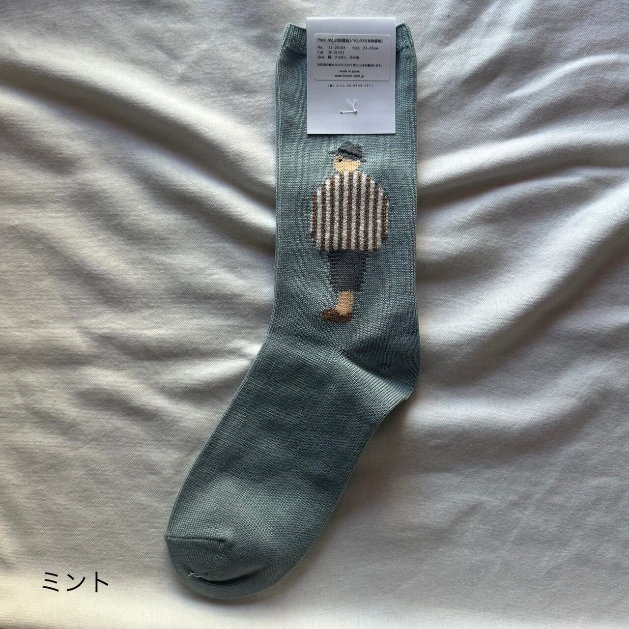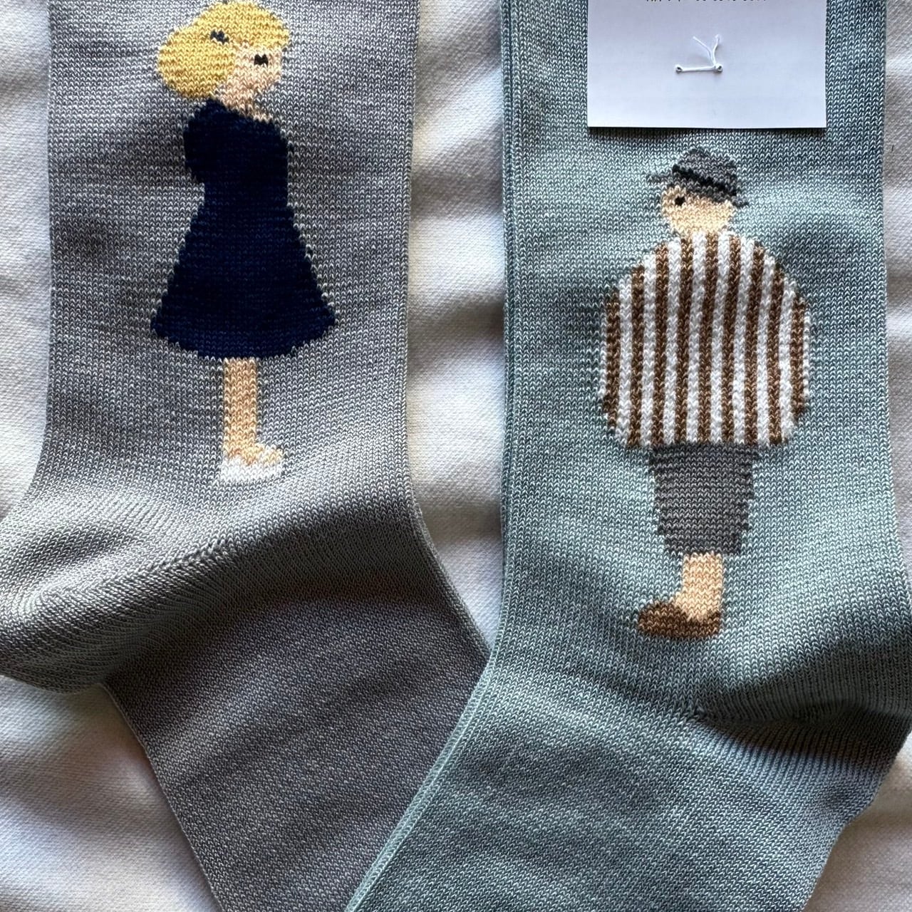 男性、女性とモチーフになった左右非対称で楽しめるソックスです。