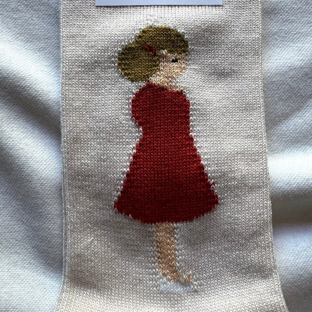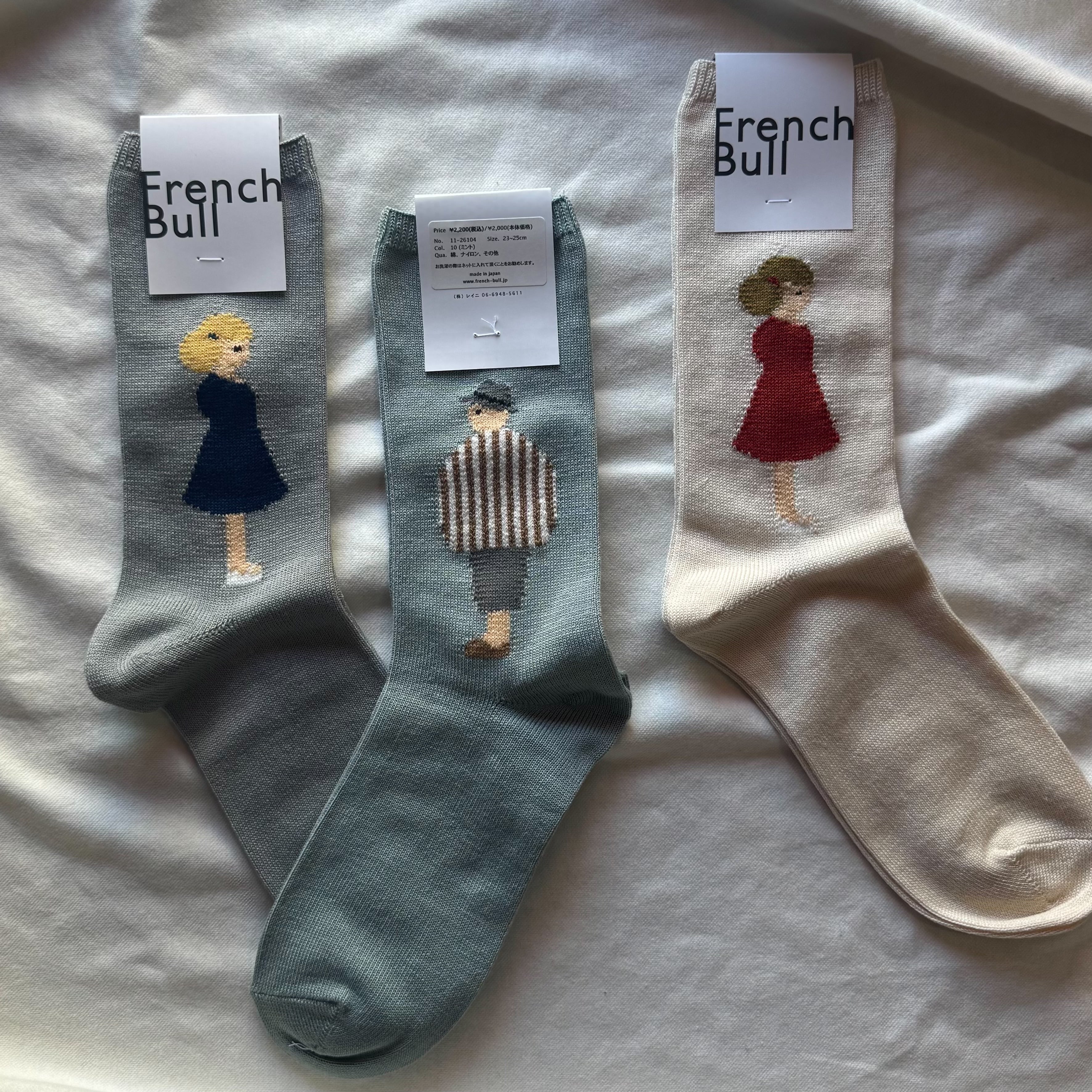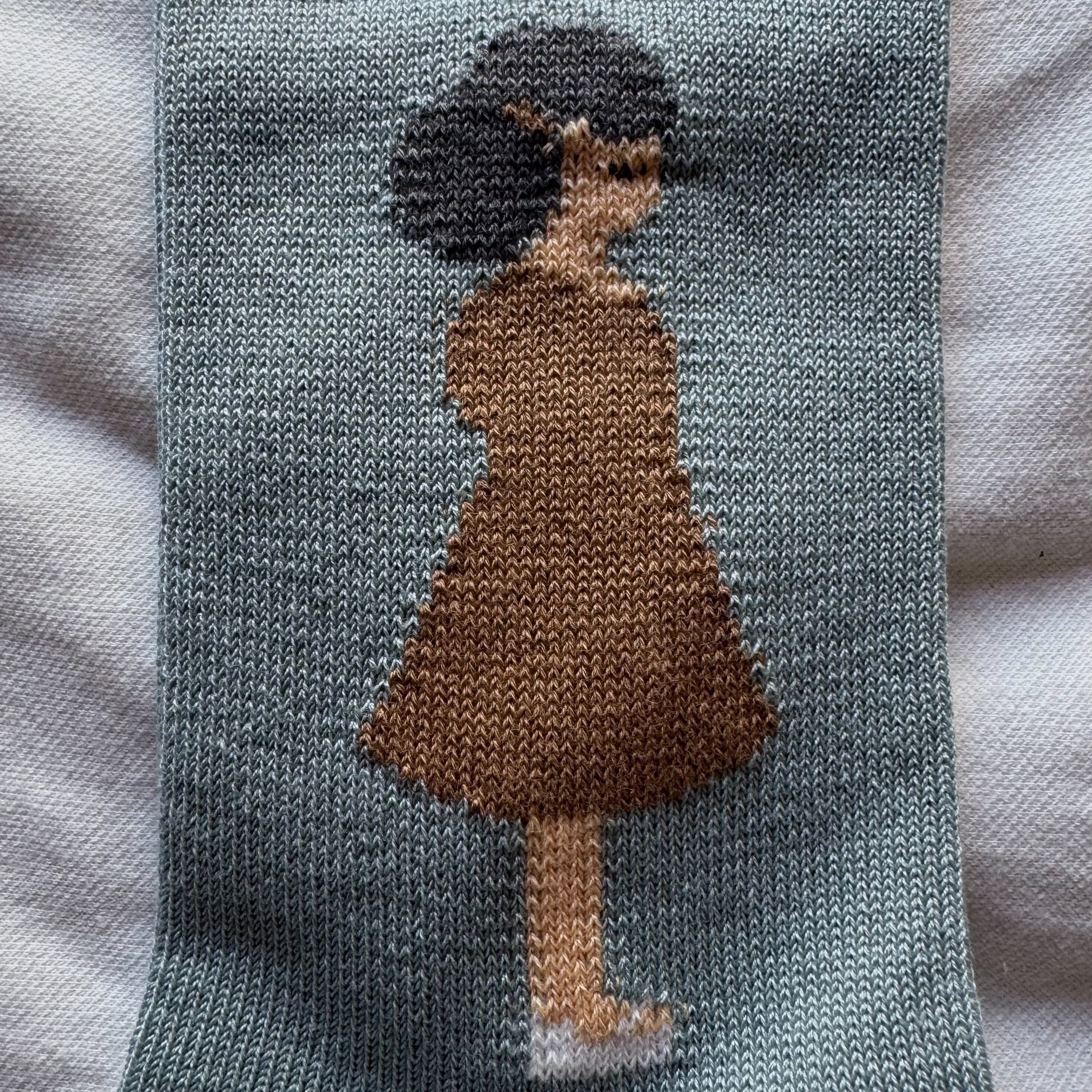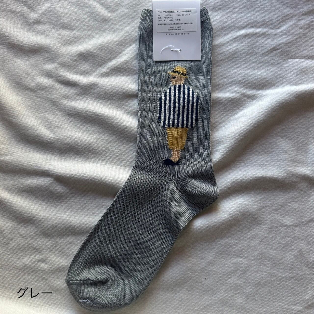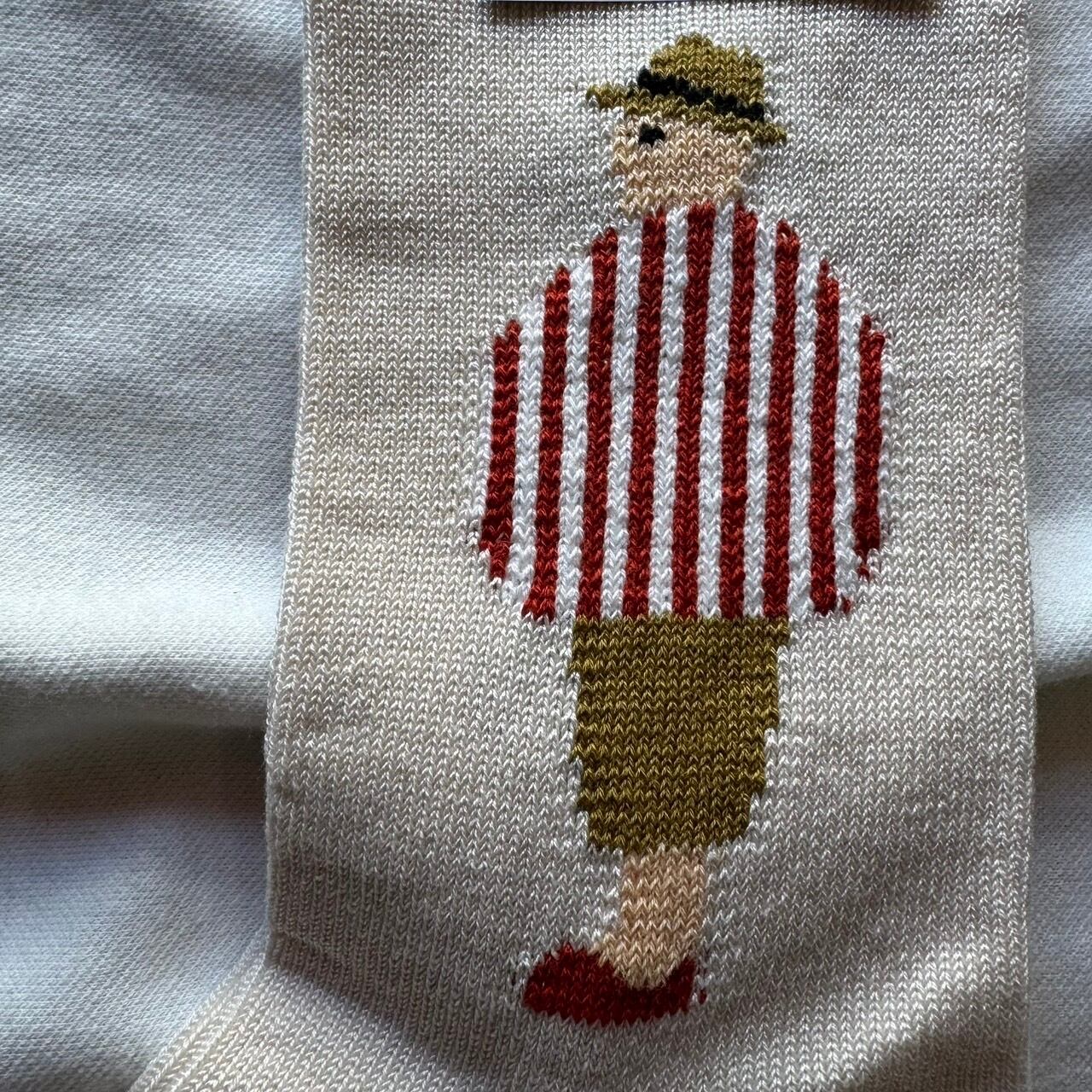 男性、女性とモチーフになった左右非対称で楽しめるソックスです。