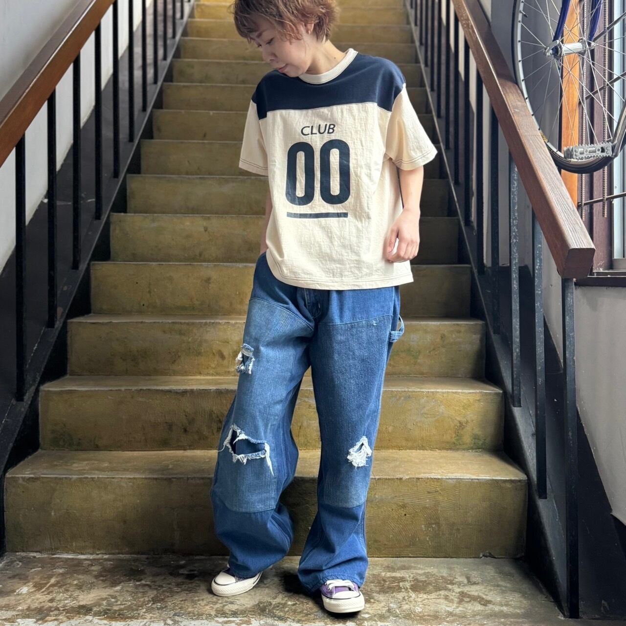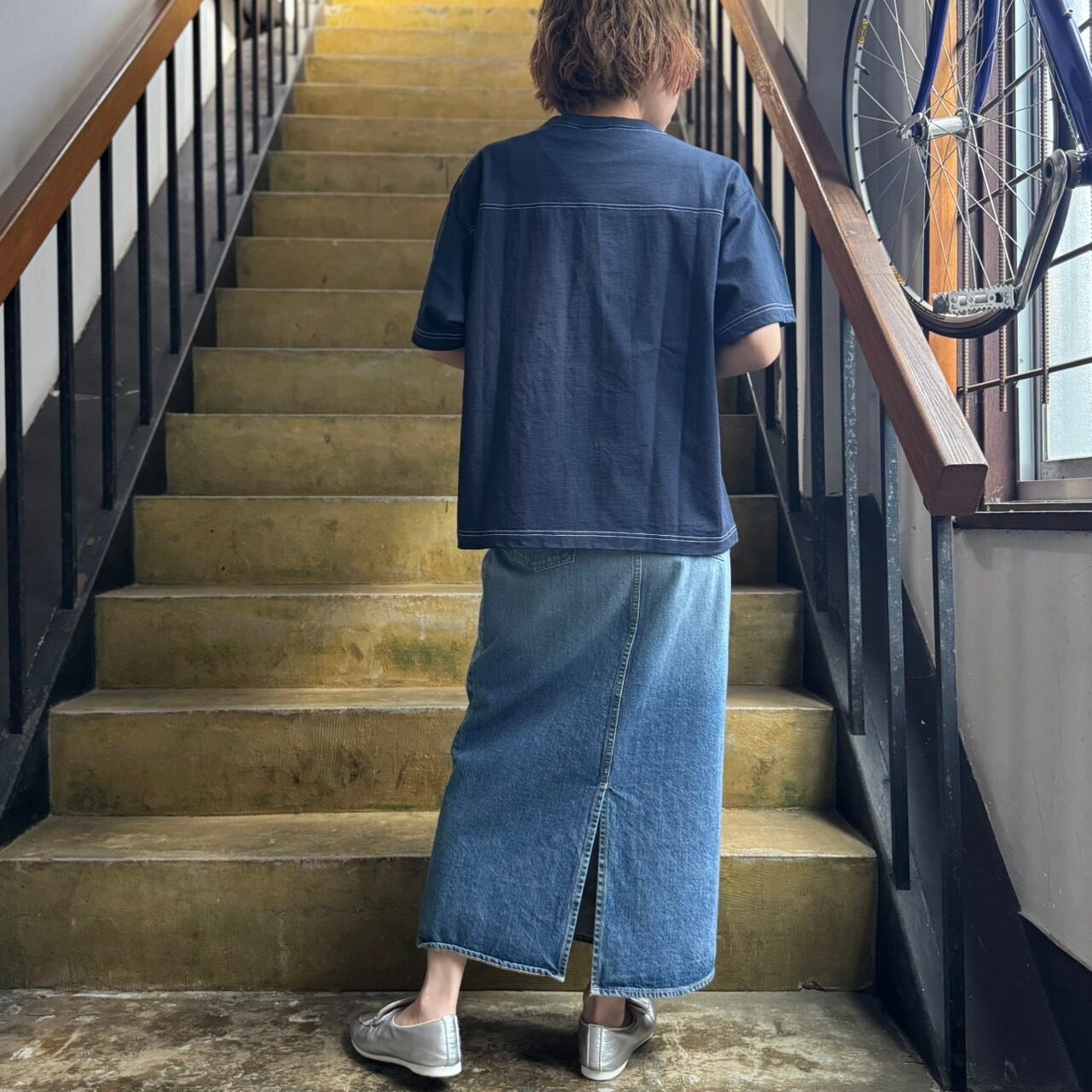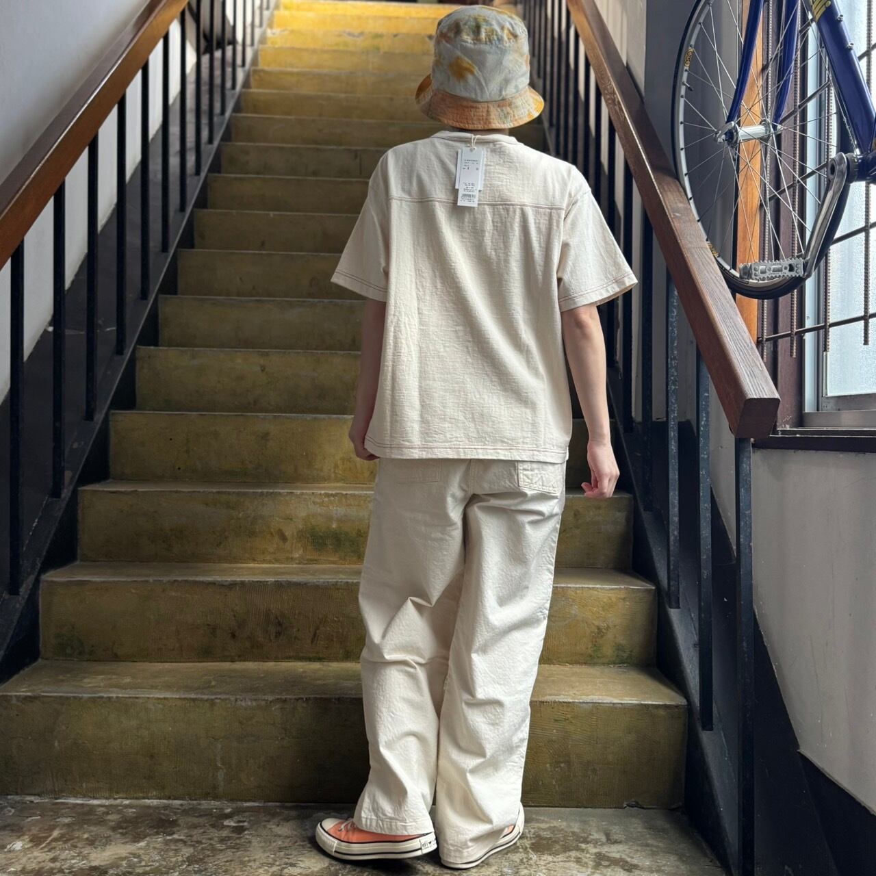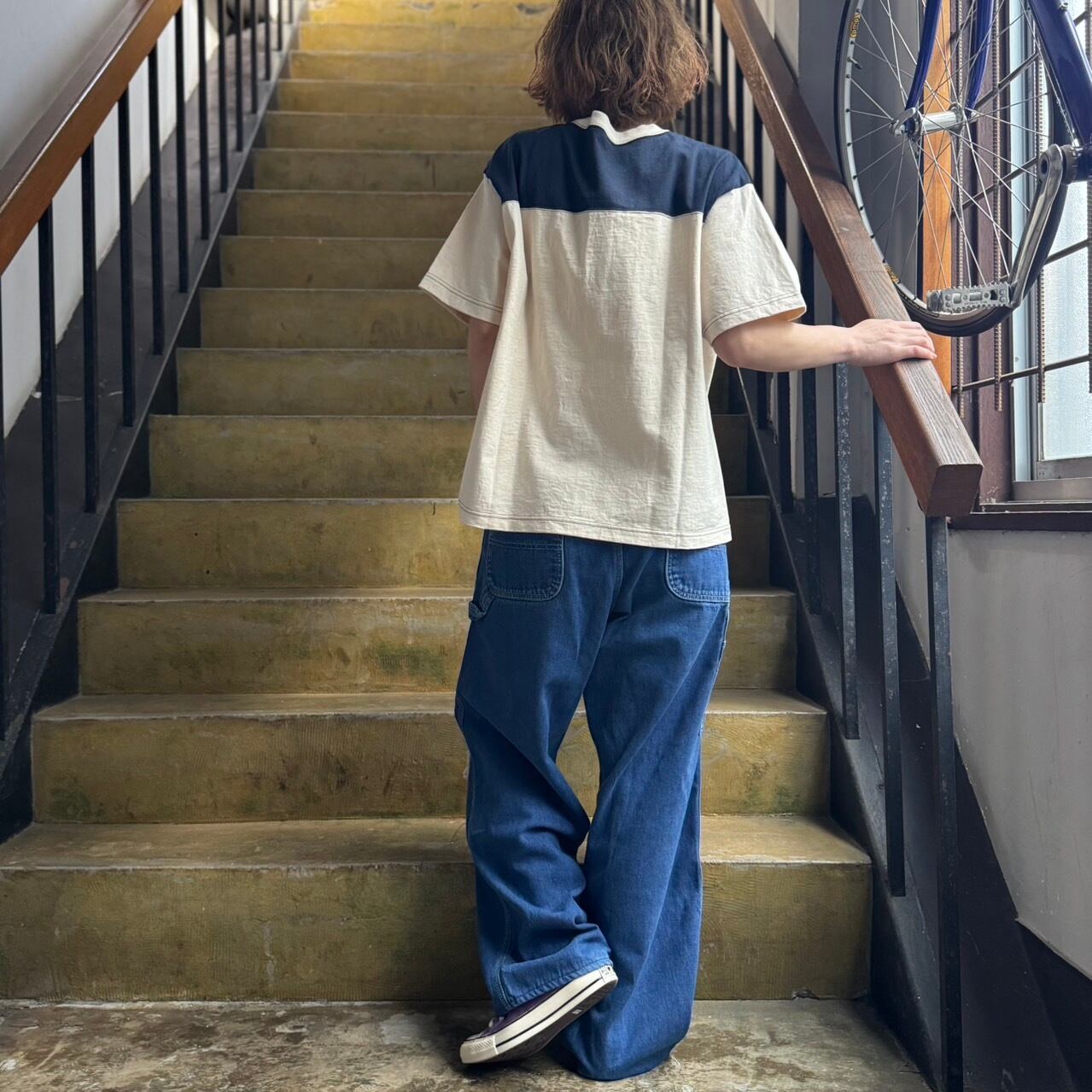 配色の2本針ステッチがどこか古着のような雰囲気を感じる
