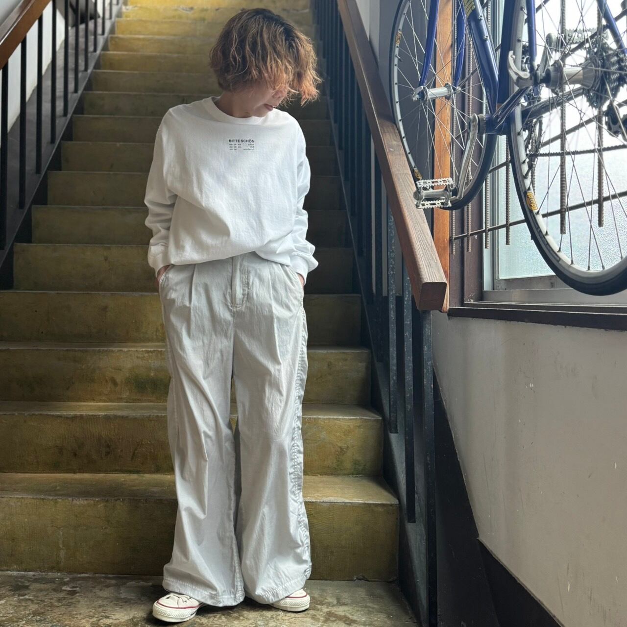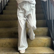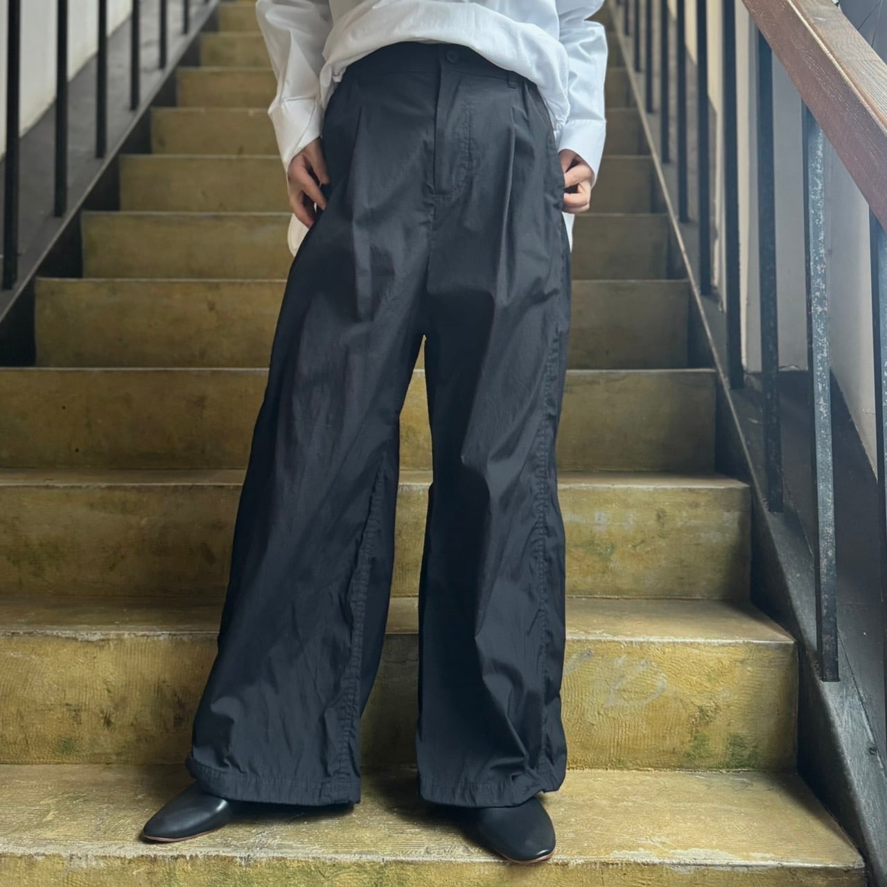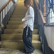 サイド巾太切り替えを入れる事でラインパンツのような