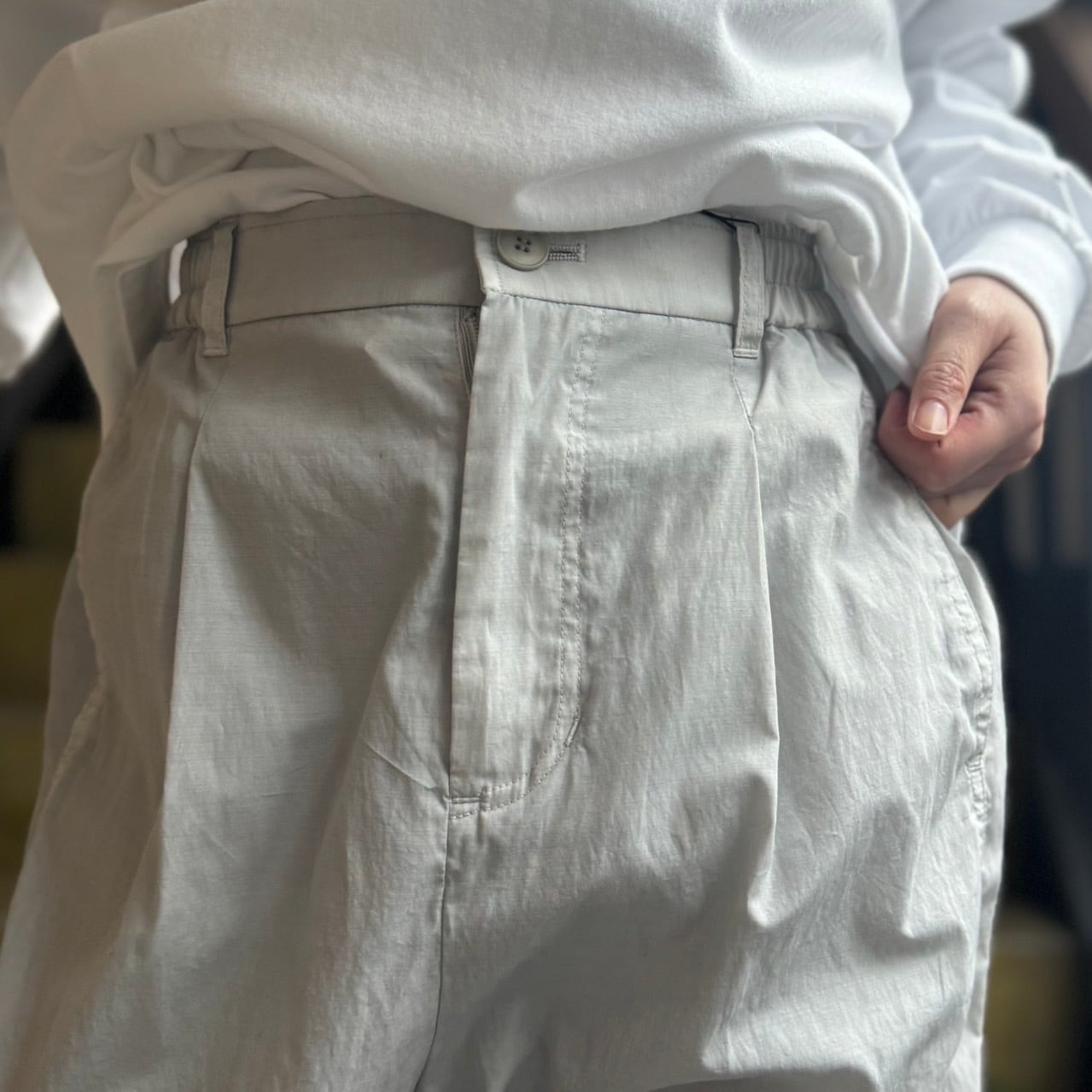 程よく肉感もあるコットンナイロン素材のタイプライター生地を使用したワークパンツです。