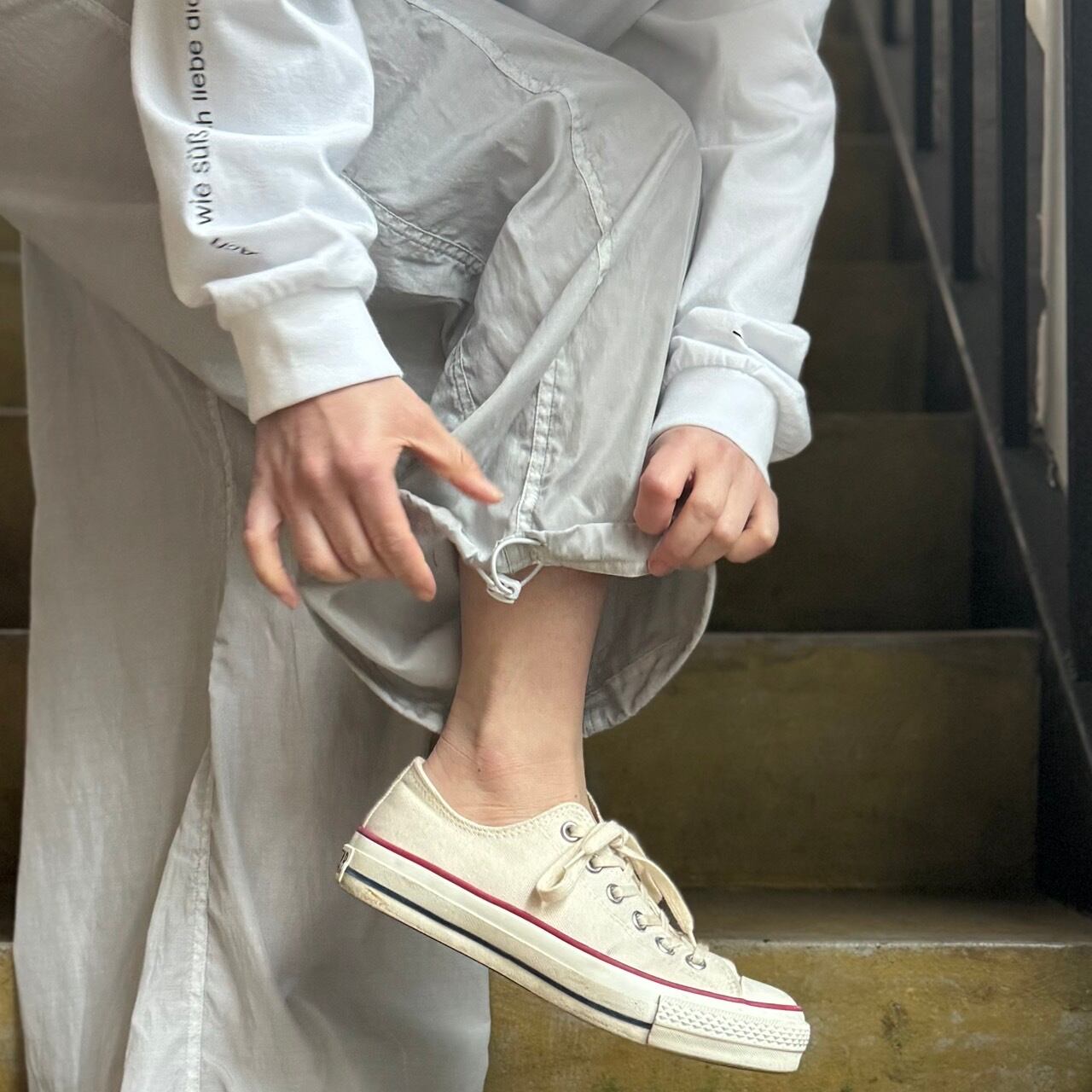 裾にはドローコードが付いており絞って履くことも可能です。