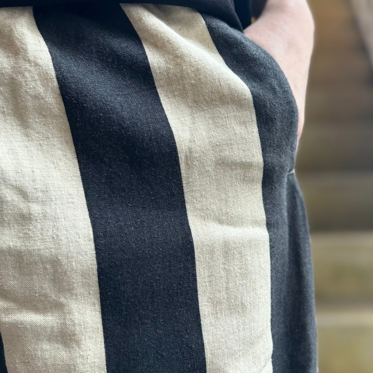 人気のルーズパンツより夏らしいリネン混のレーヨンキャンバス生地を使った