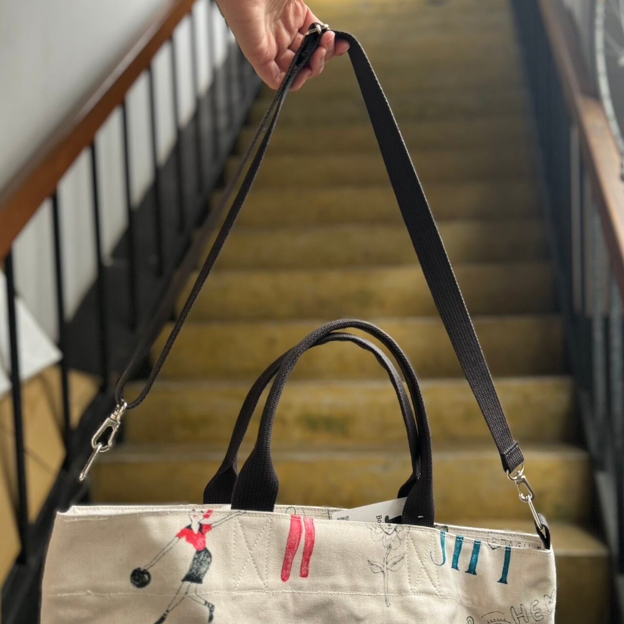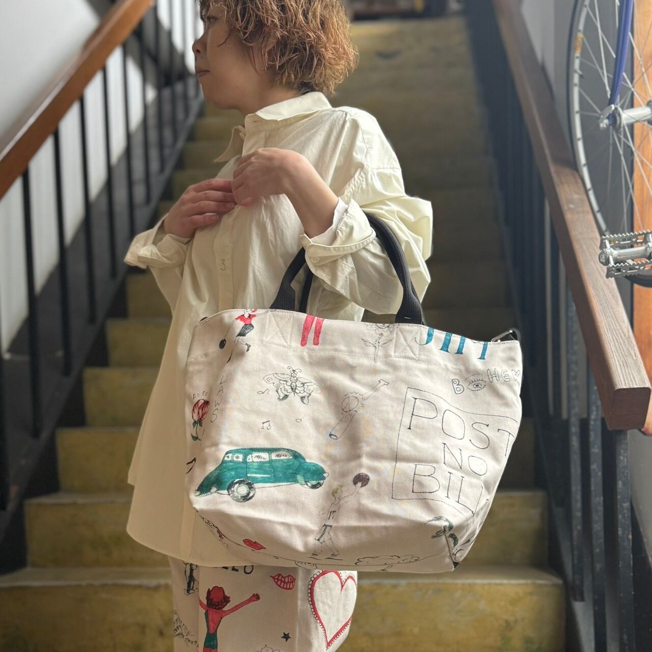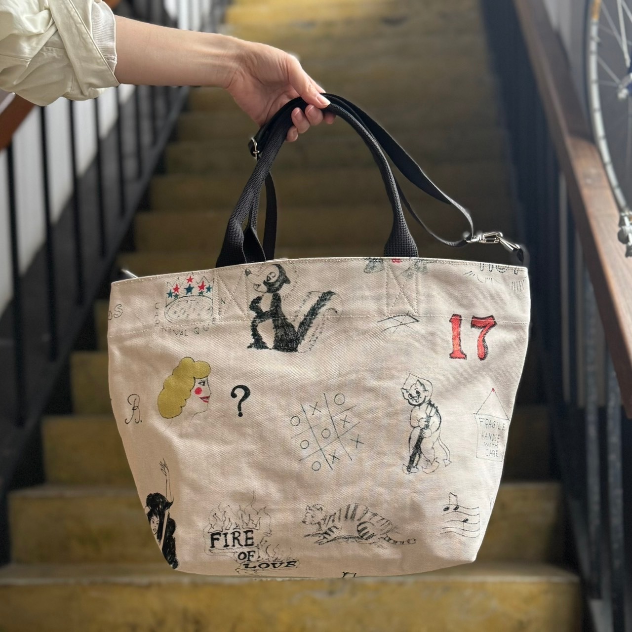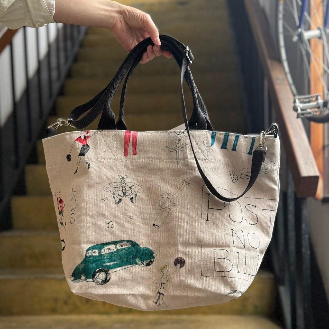 手持ちハンドルとショルダーストラップがついた2way使用のバッグのROSY柄です。
