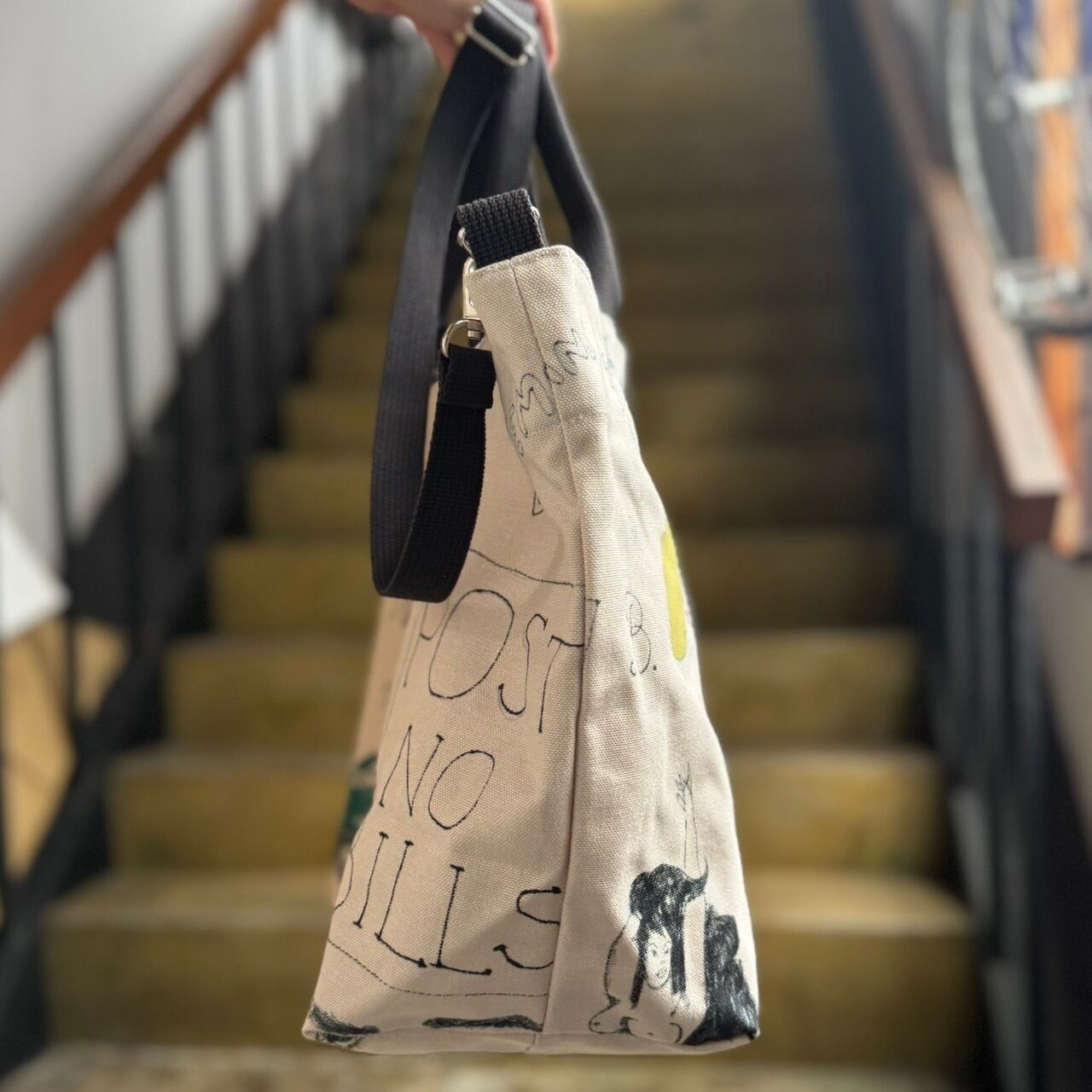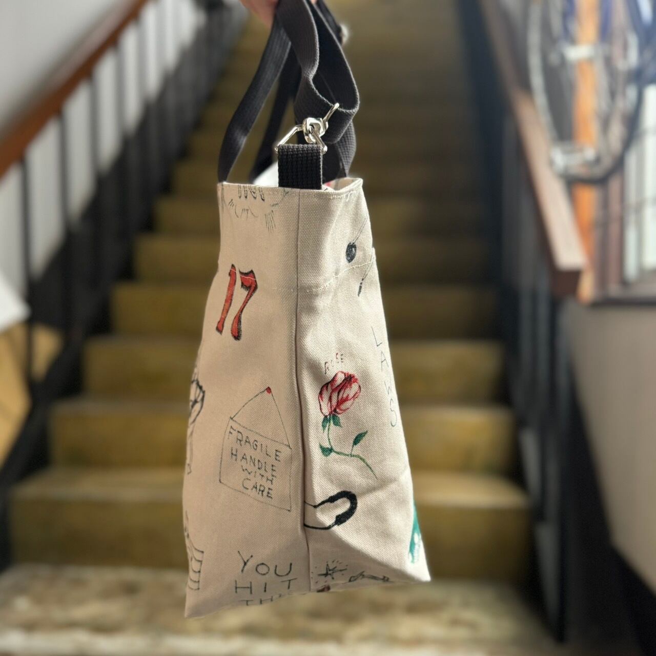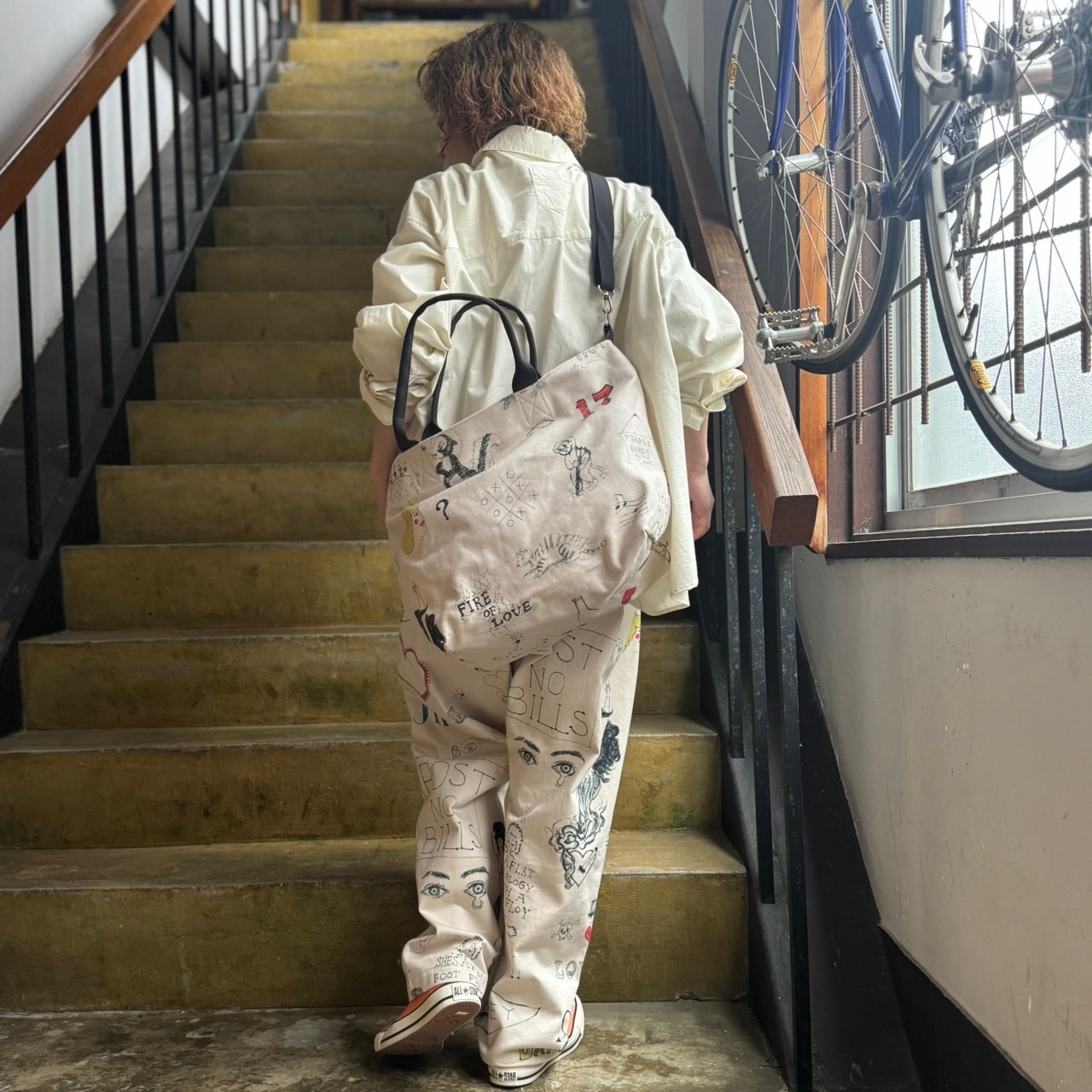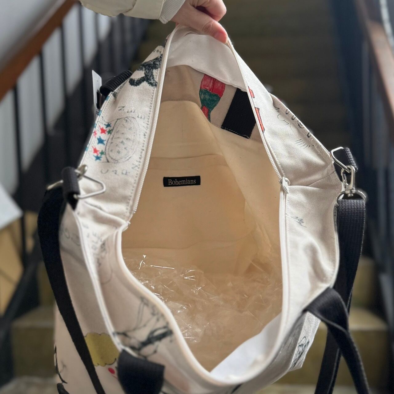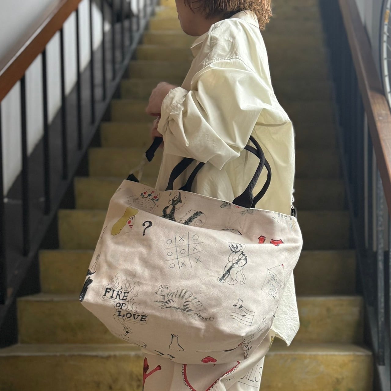 手持ちハンドルとショルダーストラップがついた2way使用のバッグのROSY柄です。