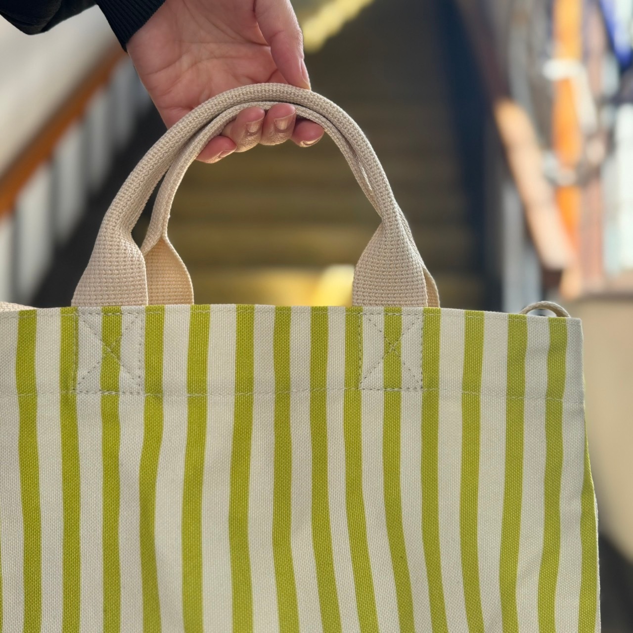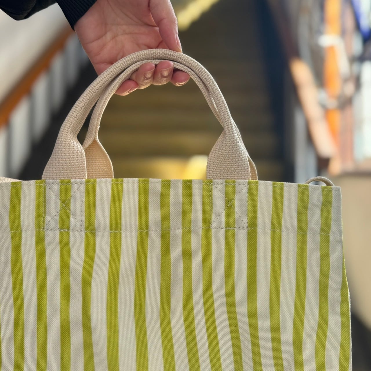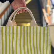 ストライプ柄のトート&ショルダーの2wayバッグです。