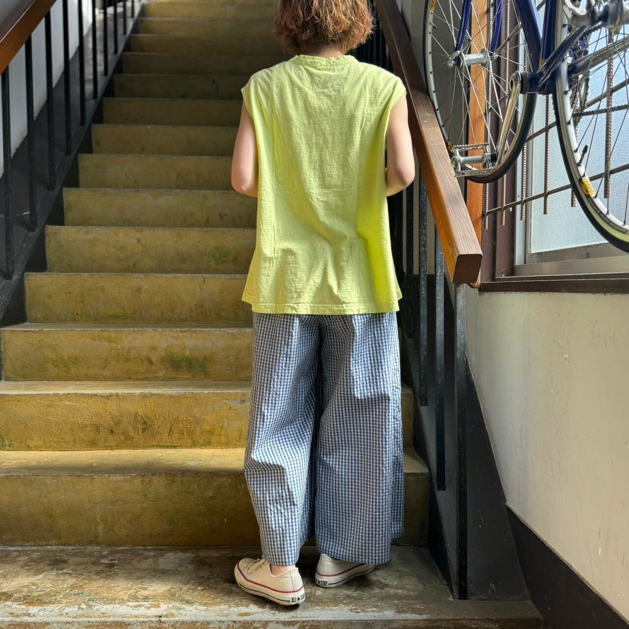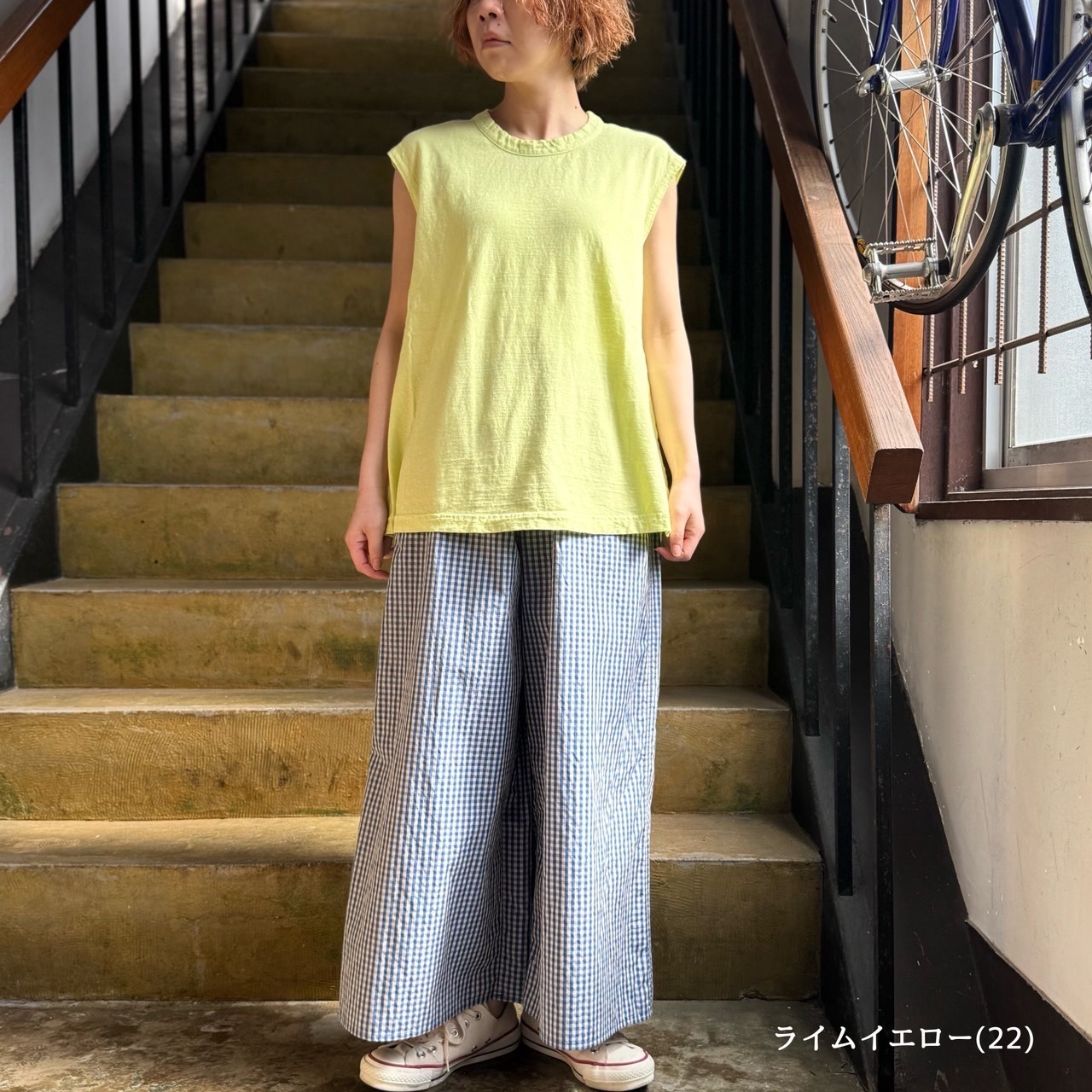 タンクよりも袖が長めなフレンチ袖タイプの無地カットソーとなります。