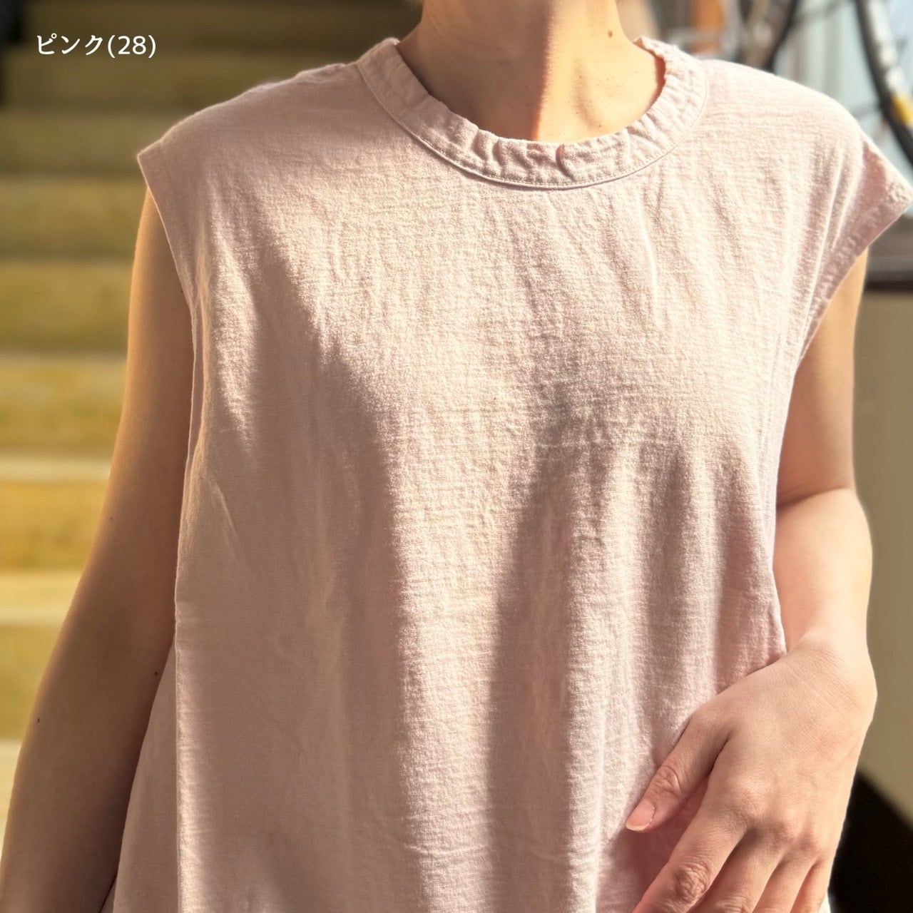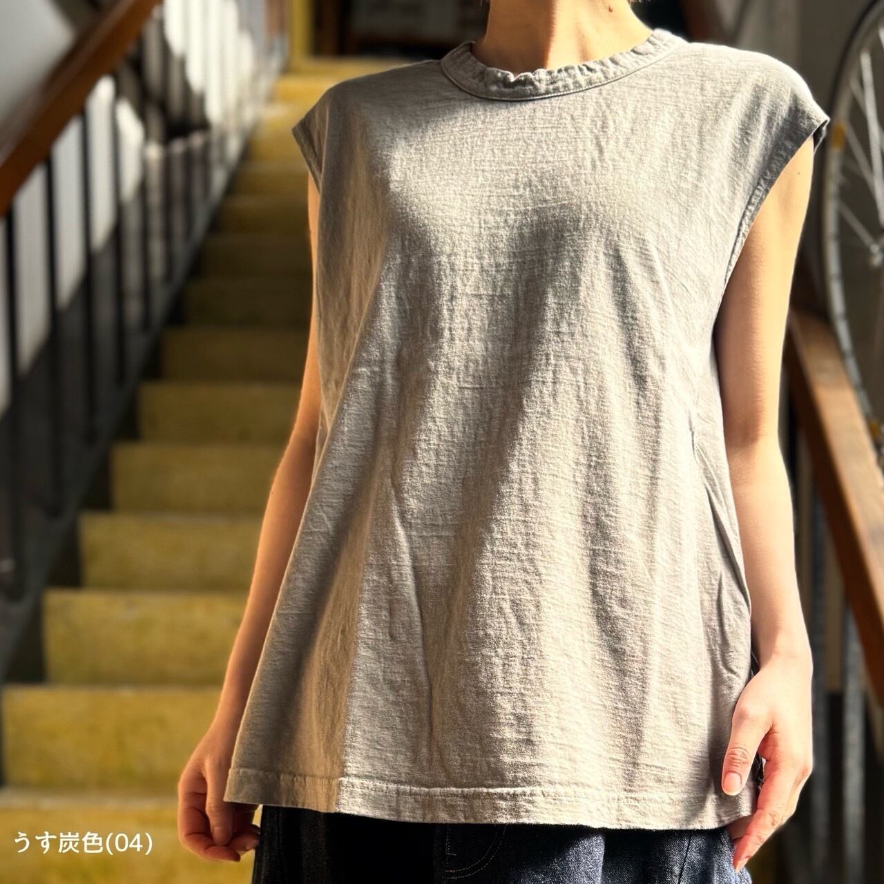 リサイクルムラ糸天竺シリーズのフレアノースリーブタイプです。