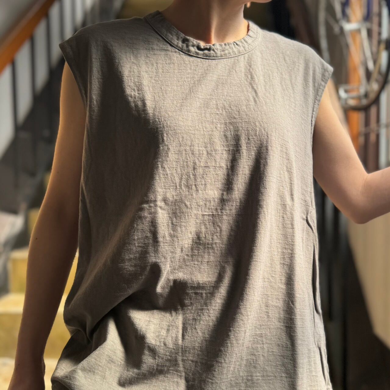 prit - リサイクルムラ糸天竺 ノースリーブフレアプルオーバー (無地)
