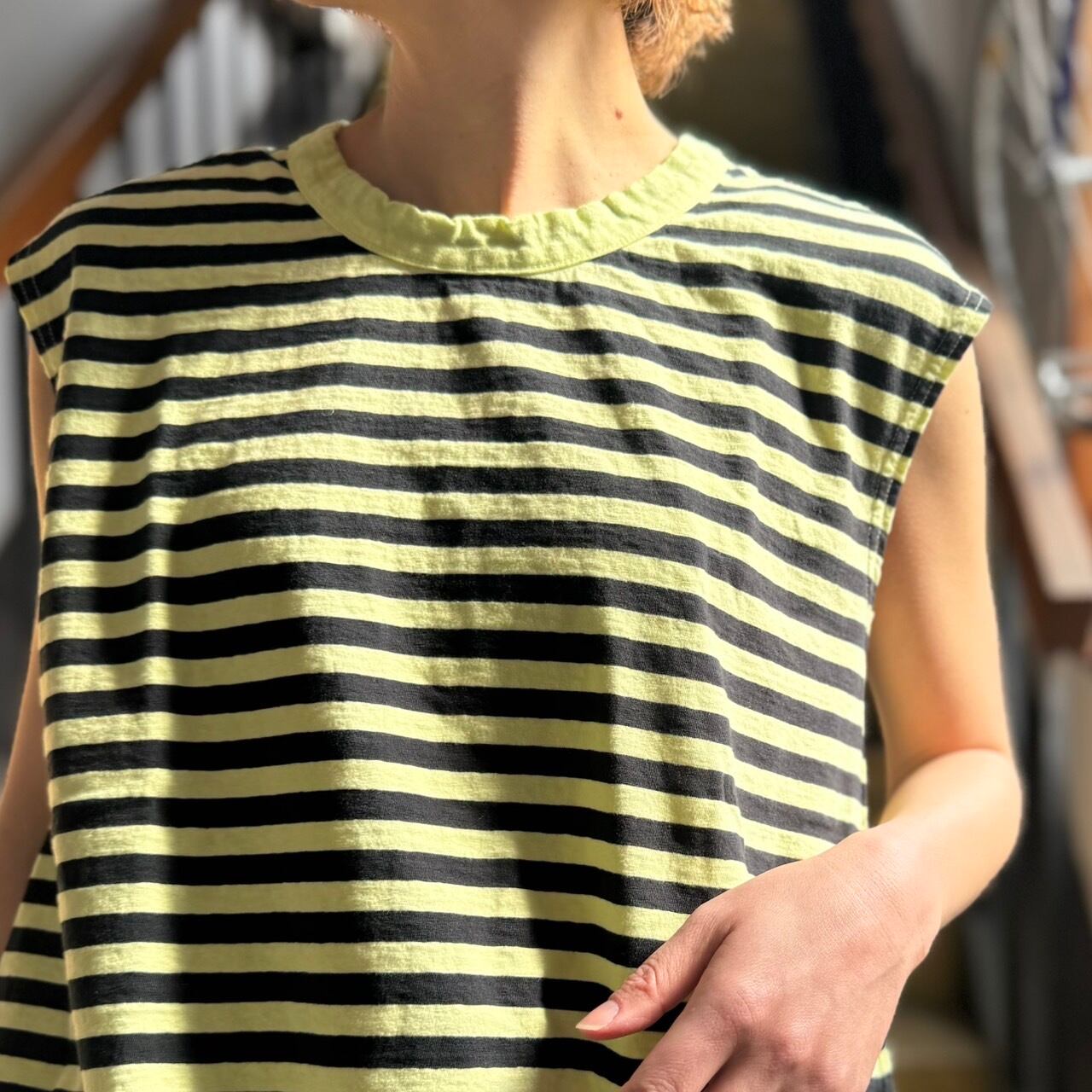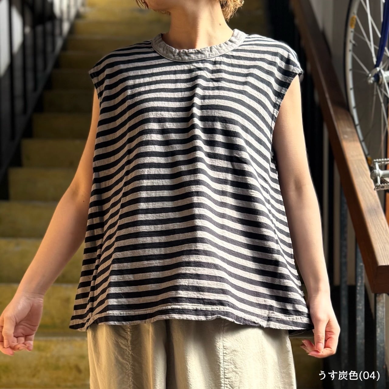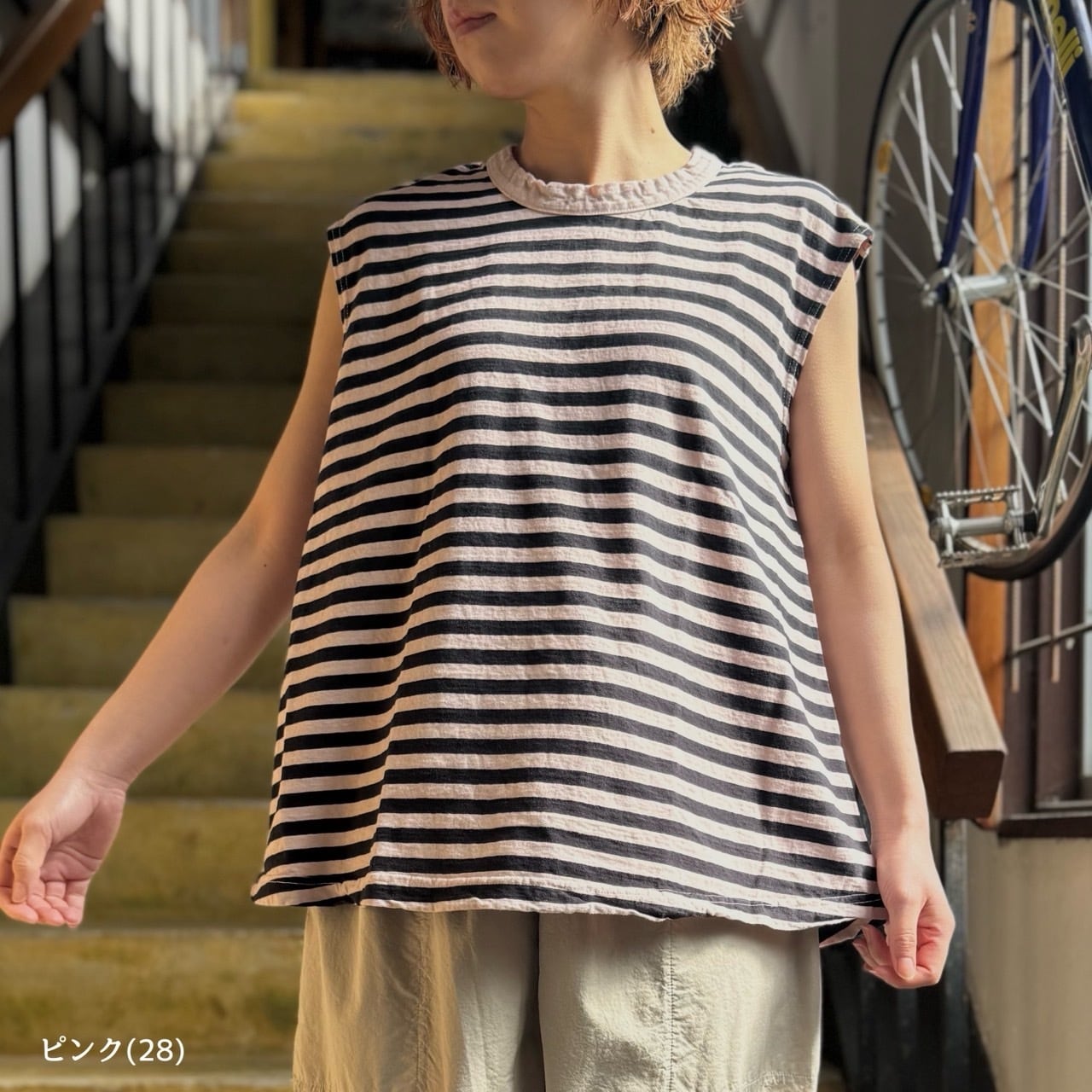 タンクよりも袖が長めなフレンチ袖タイプの無地に続き、ボーダー物も展開しています。