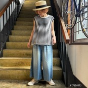 prit - リサイクルムラ糸天竺 ボーダーノースリーブフレアプルオーバー