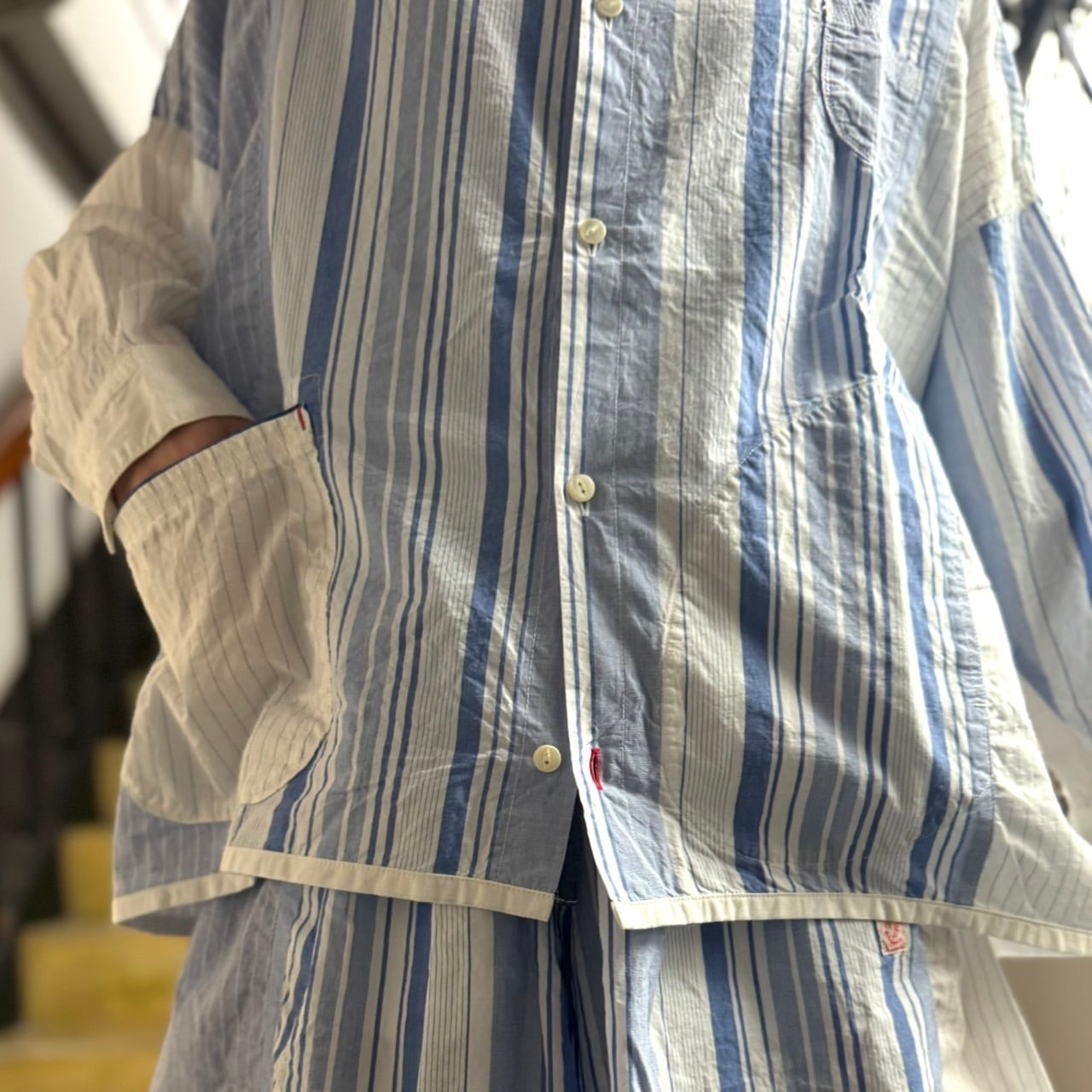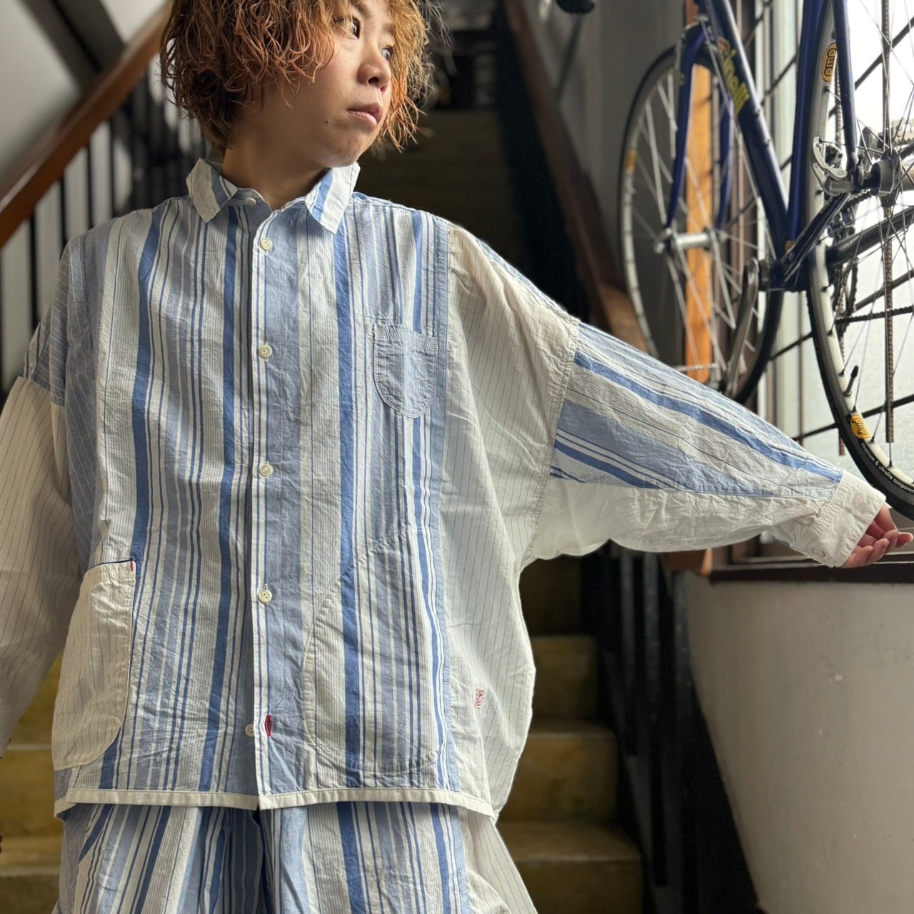 快晴堂 - 風がはらんでスゥイングする、ブルーブルーストライプシャツ