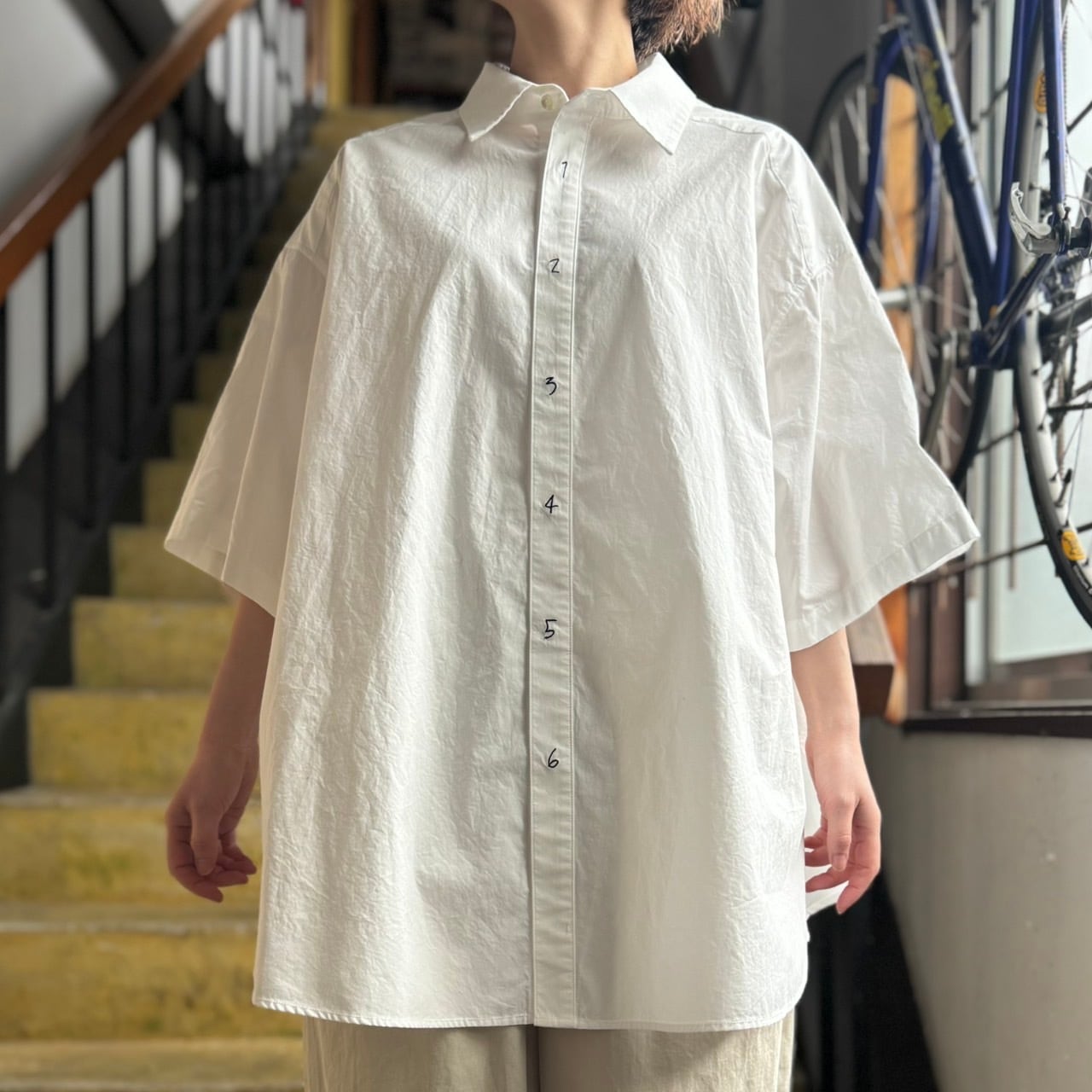 意味を決めすぎない事で着る人の解釈やテンポに自然と寄り添うシャツとなっています。