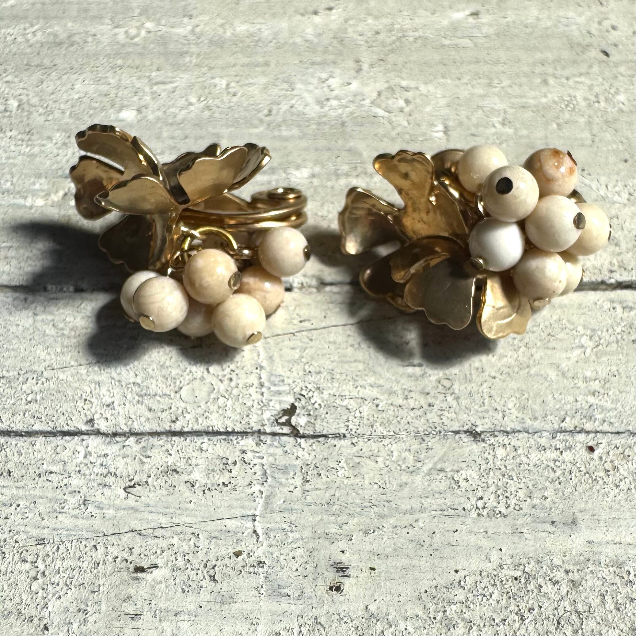 Ouca - Vintage/マットGDフラワー+天然石ピアス