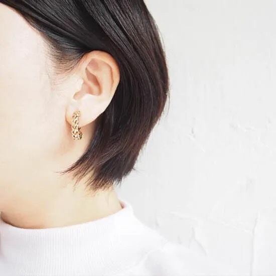 チェーンのディテールを取り入れた抜け感のあるフープデザインのイヤリングです。