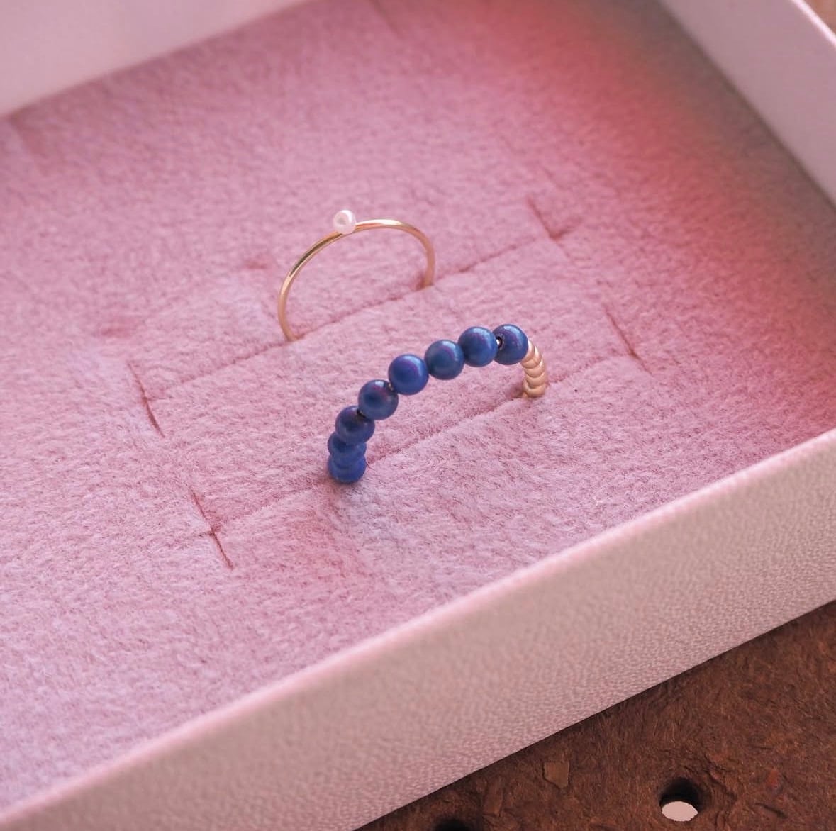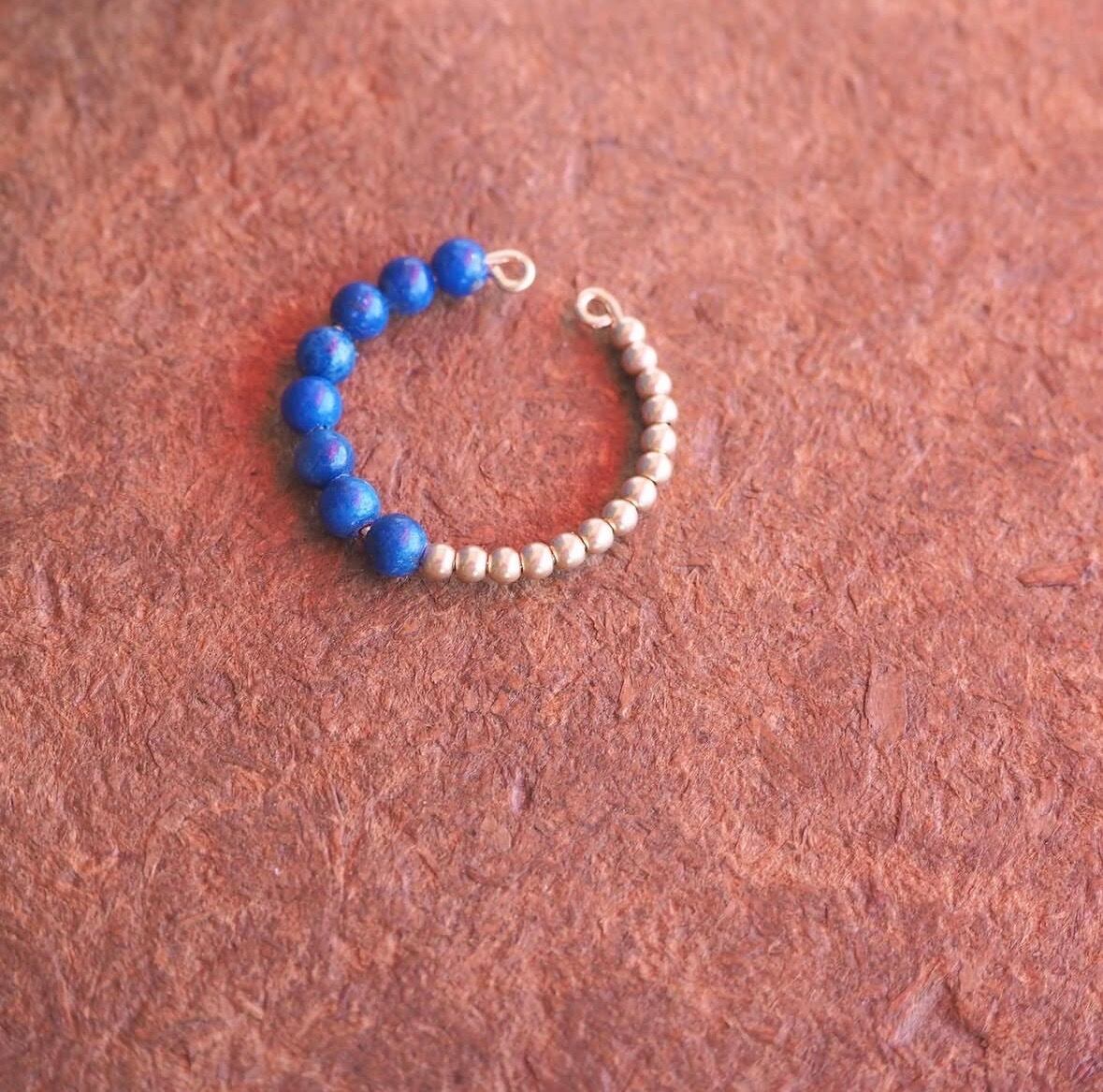 メタリックな輝きと発色の綺麗なラピスラズリを合わせた