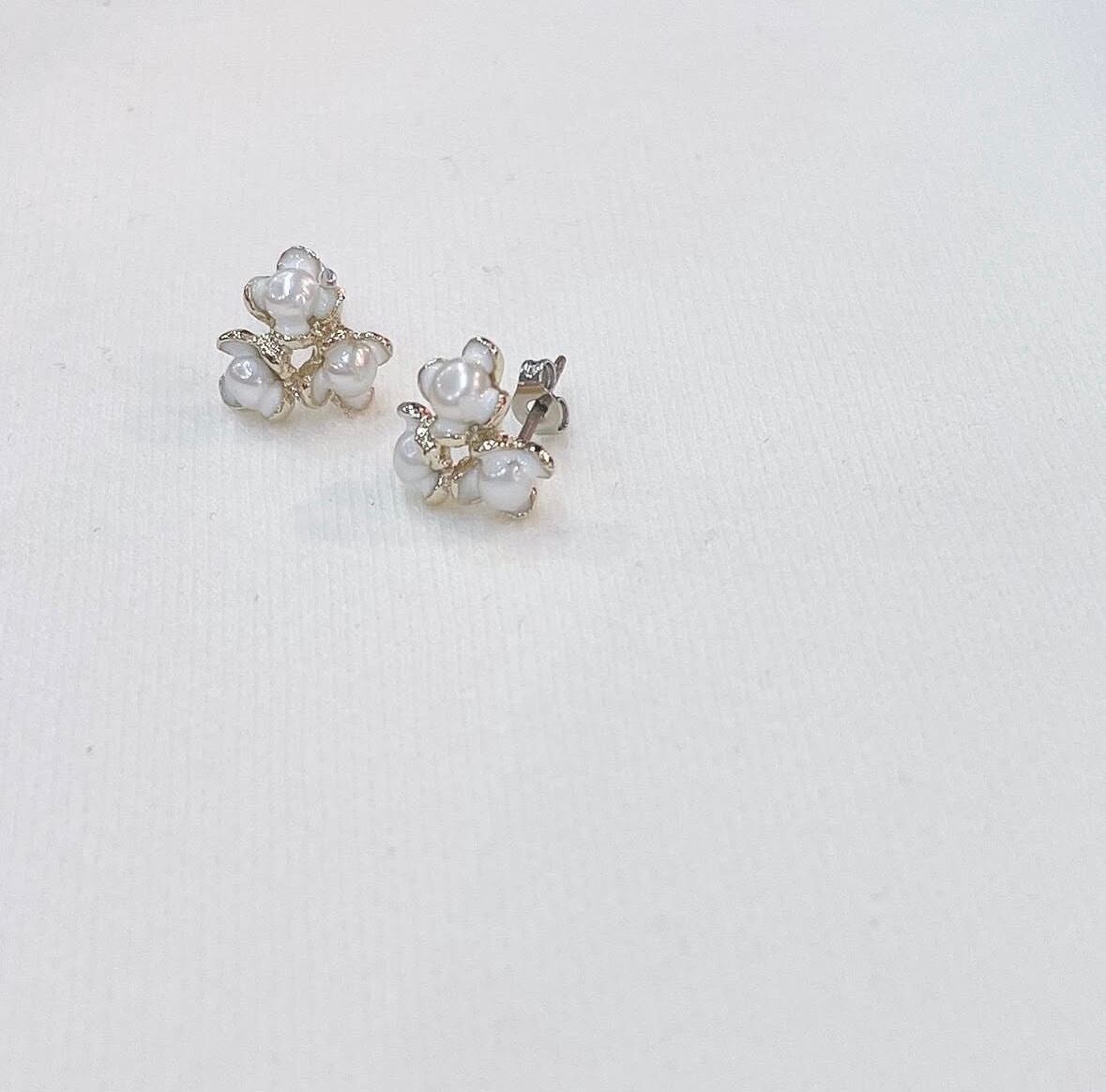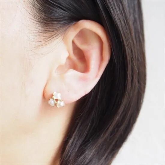 瑞々しいハナミズキのお花をモチーフにしフラワーモチーフでありながら華やかさや可愛らしさだけではなく清楚なヴィンテージのような凛としたたたずまいの要素も入れた上品なピアスです。