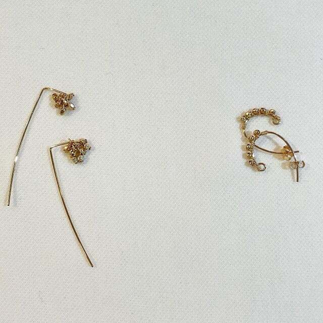 14KGF素材の小さなパーツを主役にした軽やかな付け心地のピアスとなっています。