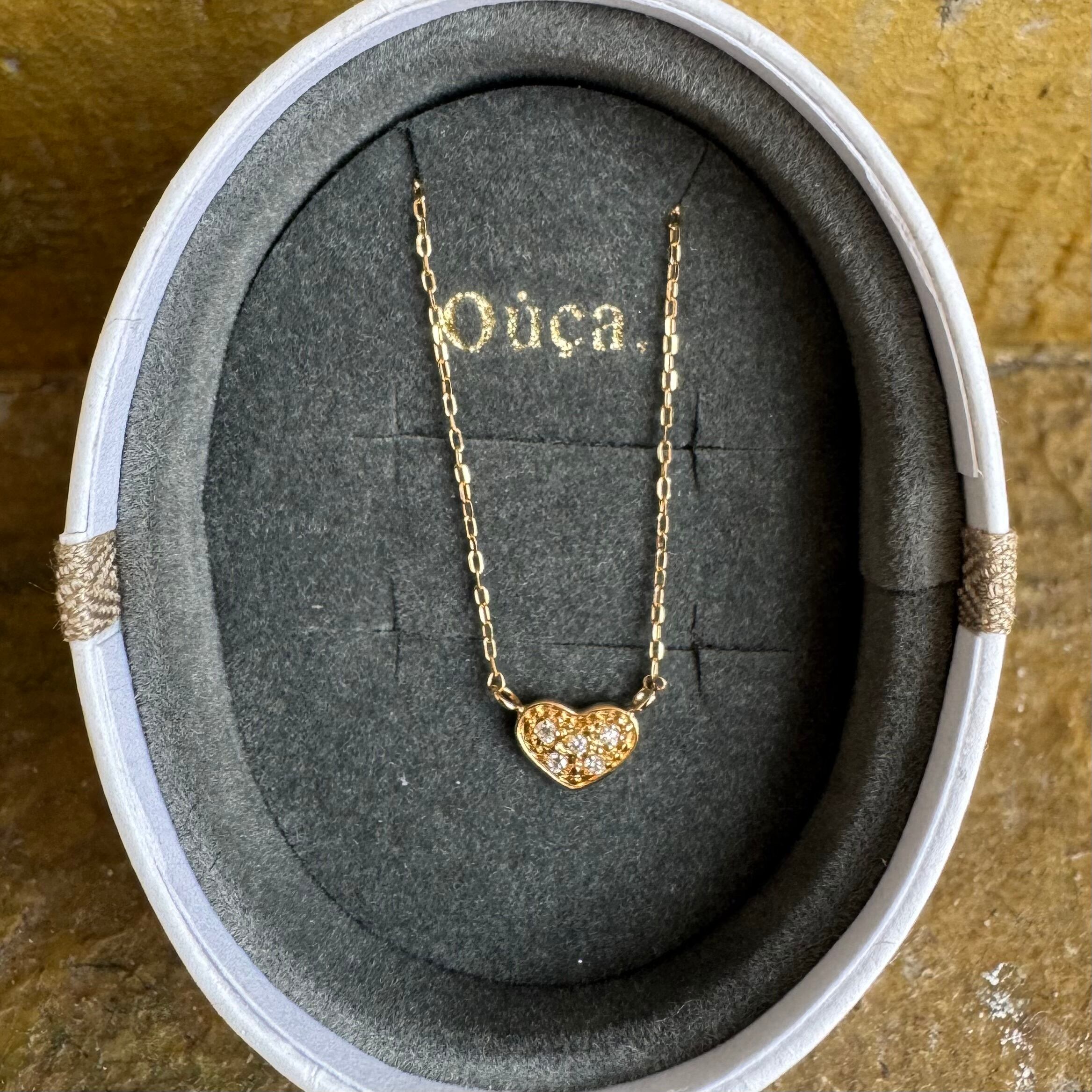 Ouca - Nuque/5粒ダイヤ18KYGハートネックレス