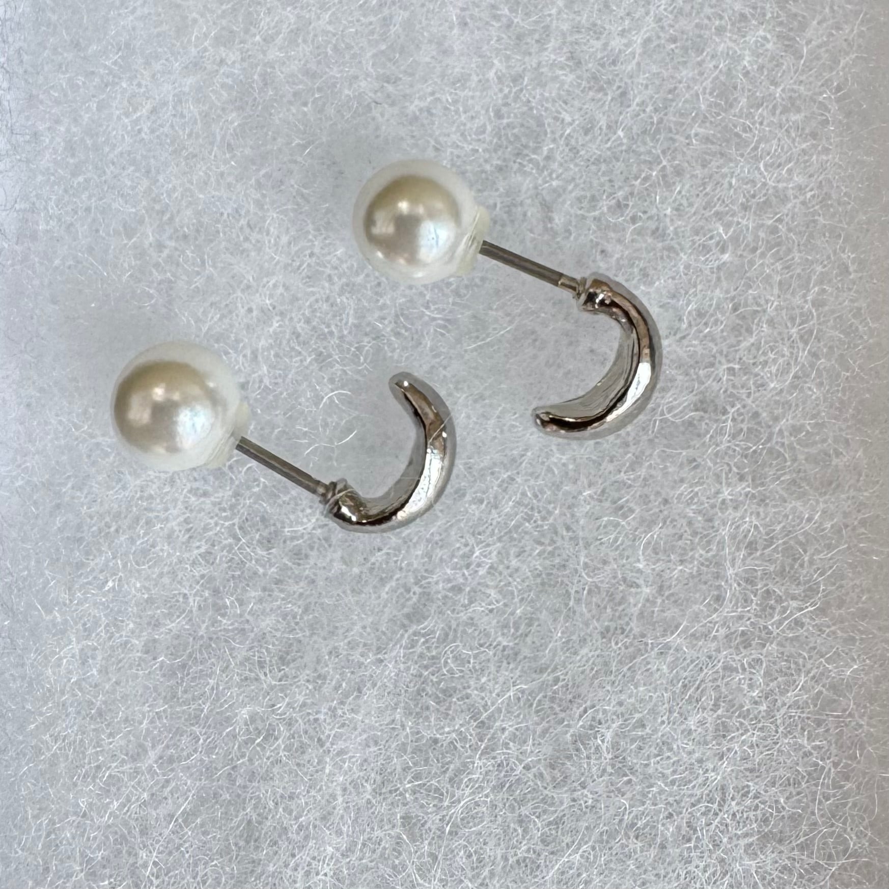 Ouca - Circle/ロジウムミニC型+パールキャッチピアス