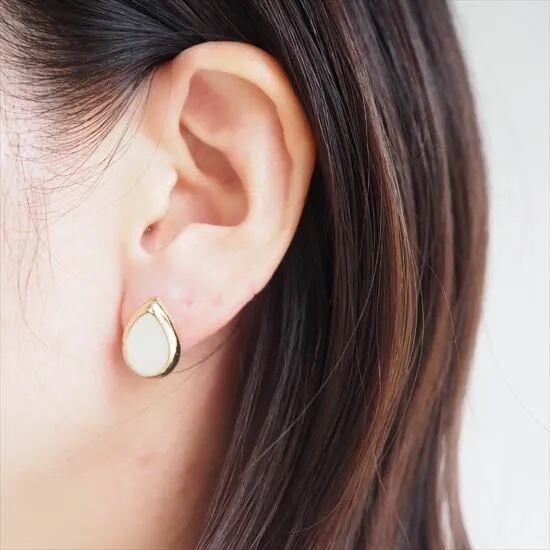 Ouca - Modern/ホワイトエナメルツユ型ピアス