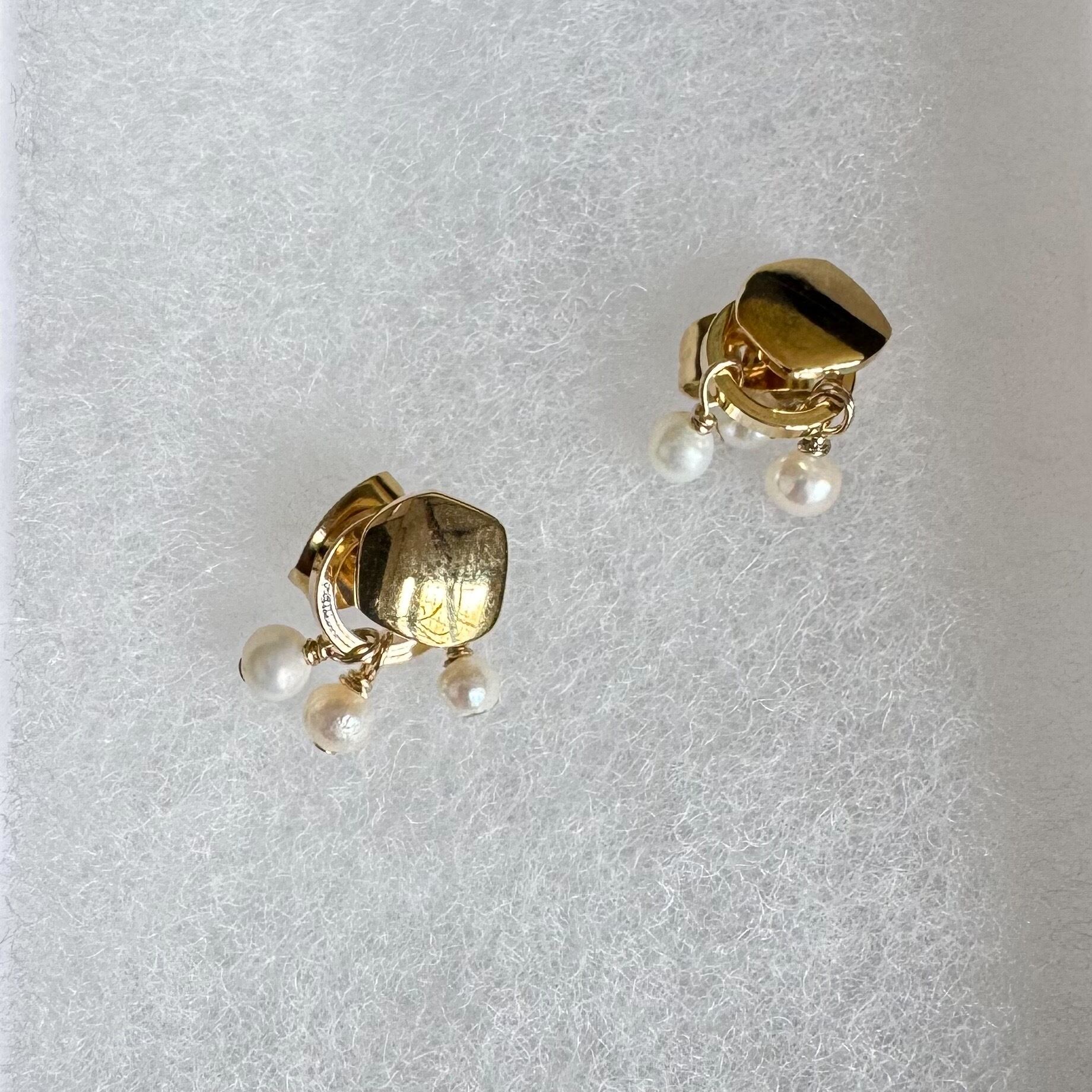 Ouca - Circle/ステンレスミニモチーフ+3粒淡水パール2wayピアス