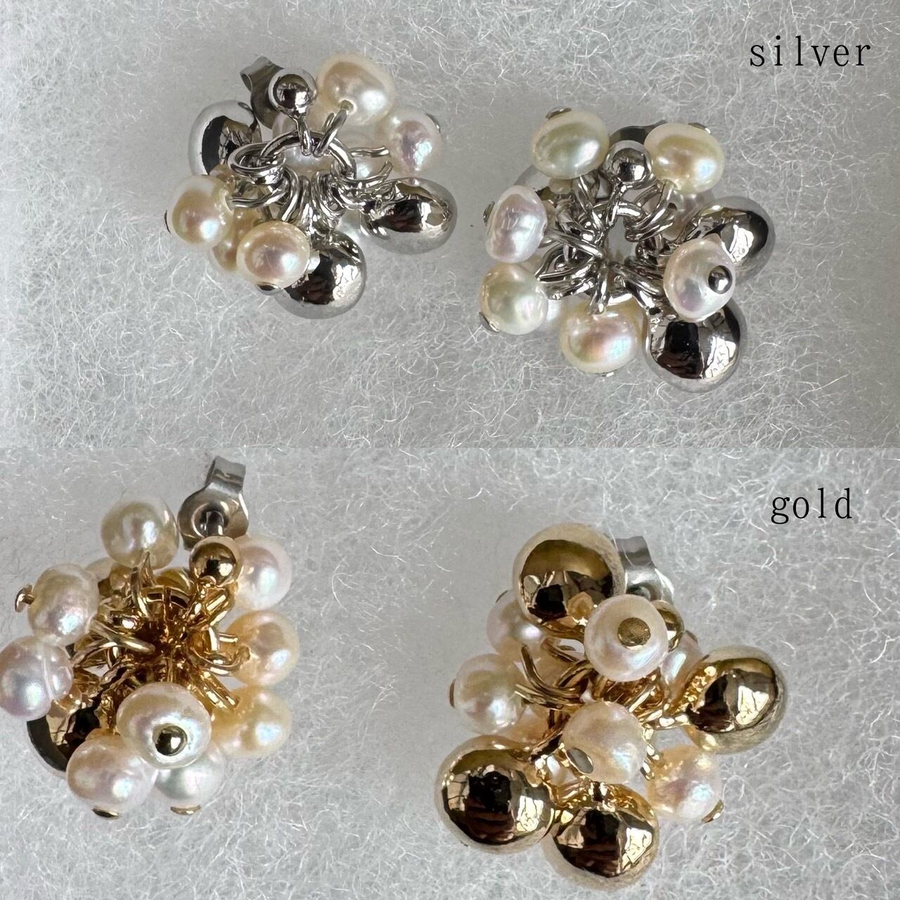 メタリックな表情との調和が楽しめる麗しい淡水パールのピアスです。