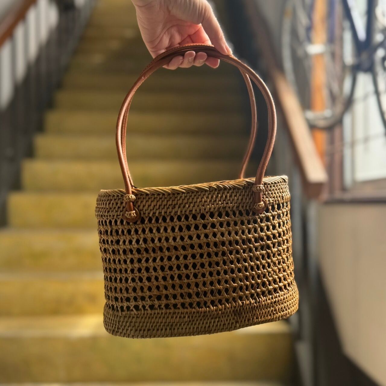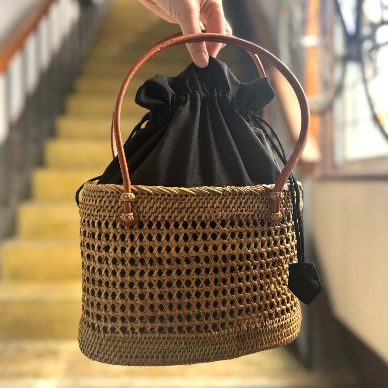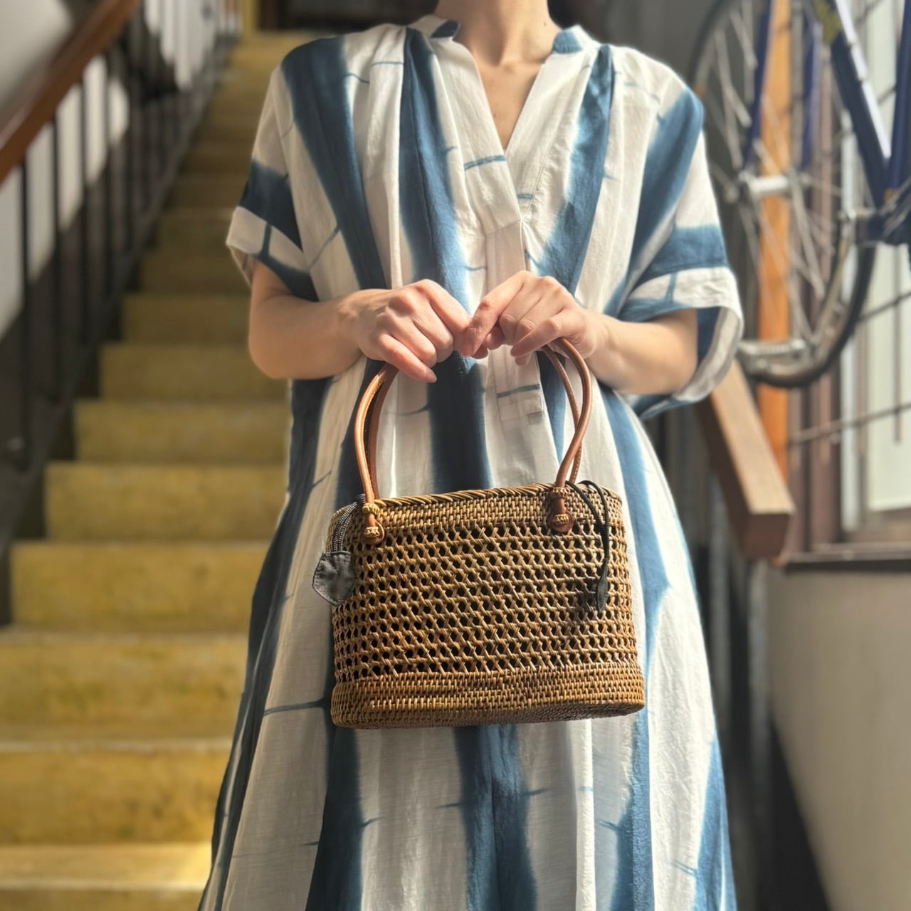 軽くて丈夫な天然草木のアタを編み込んだカゴバッグです。