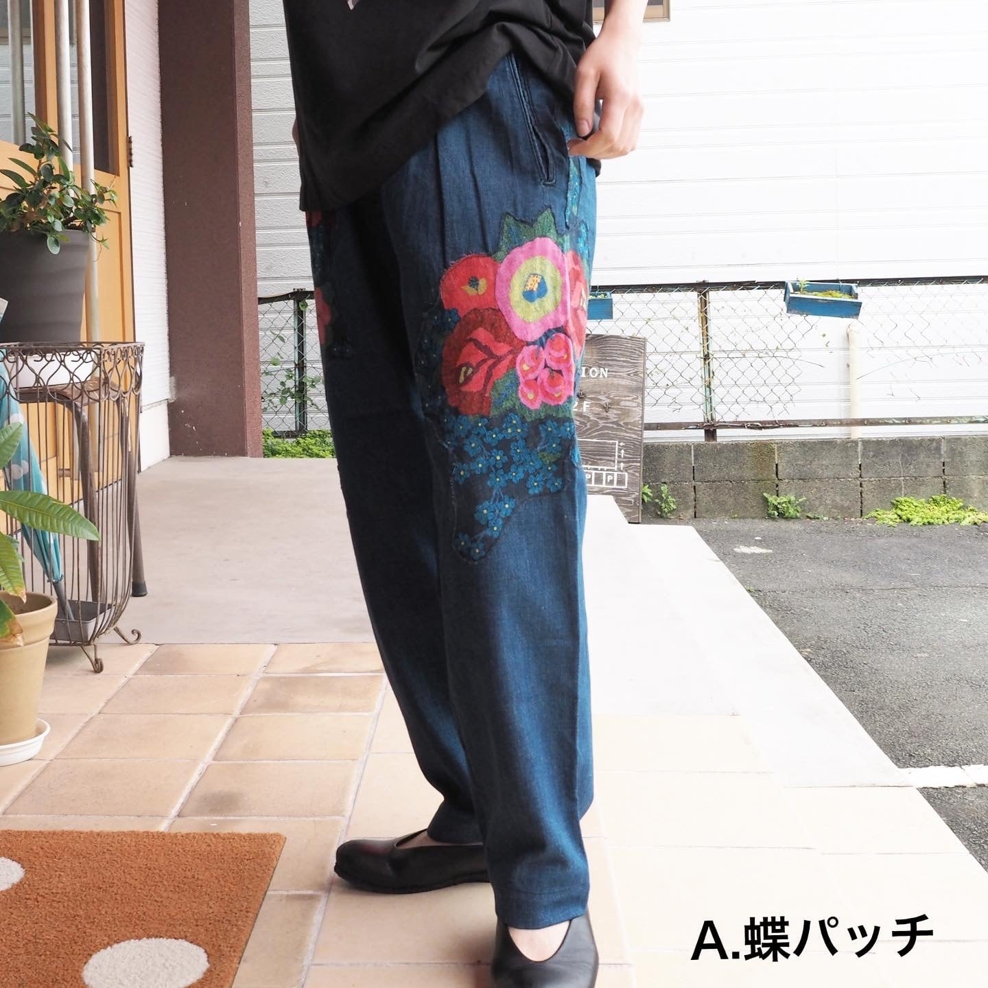 BOHEMIANS - DENIM GARDEN PATCH RELAX TUCK PANTS (A.蝶パッチ)