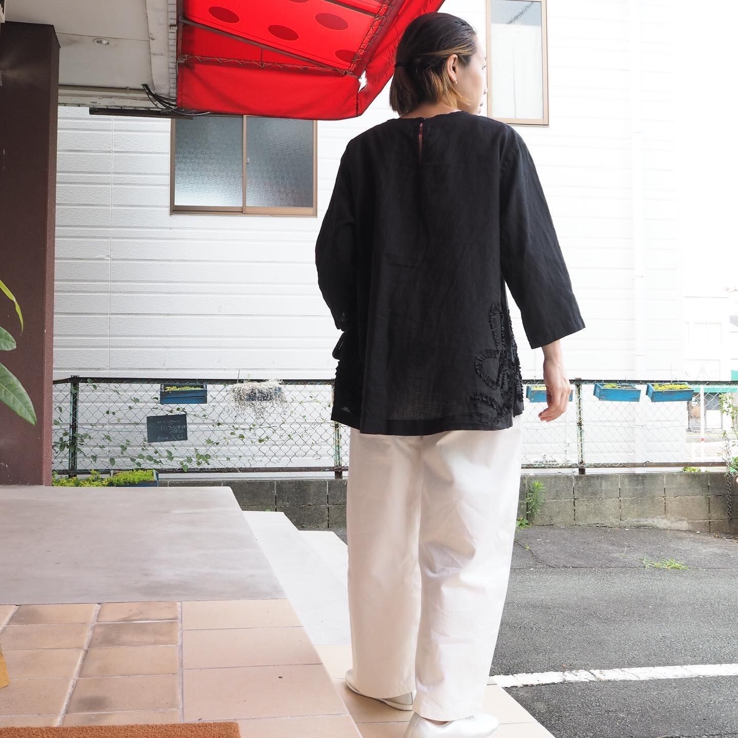 腕周りも隠せる7分袖で安心してさらっと着て頂けます。