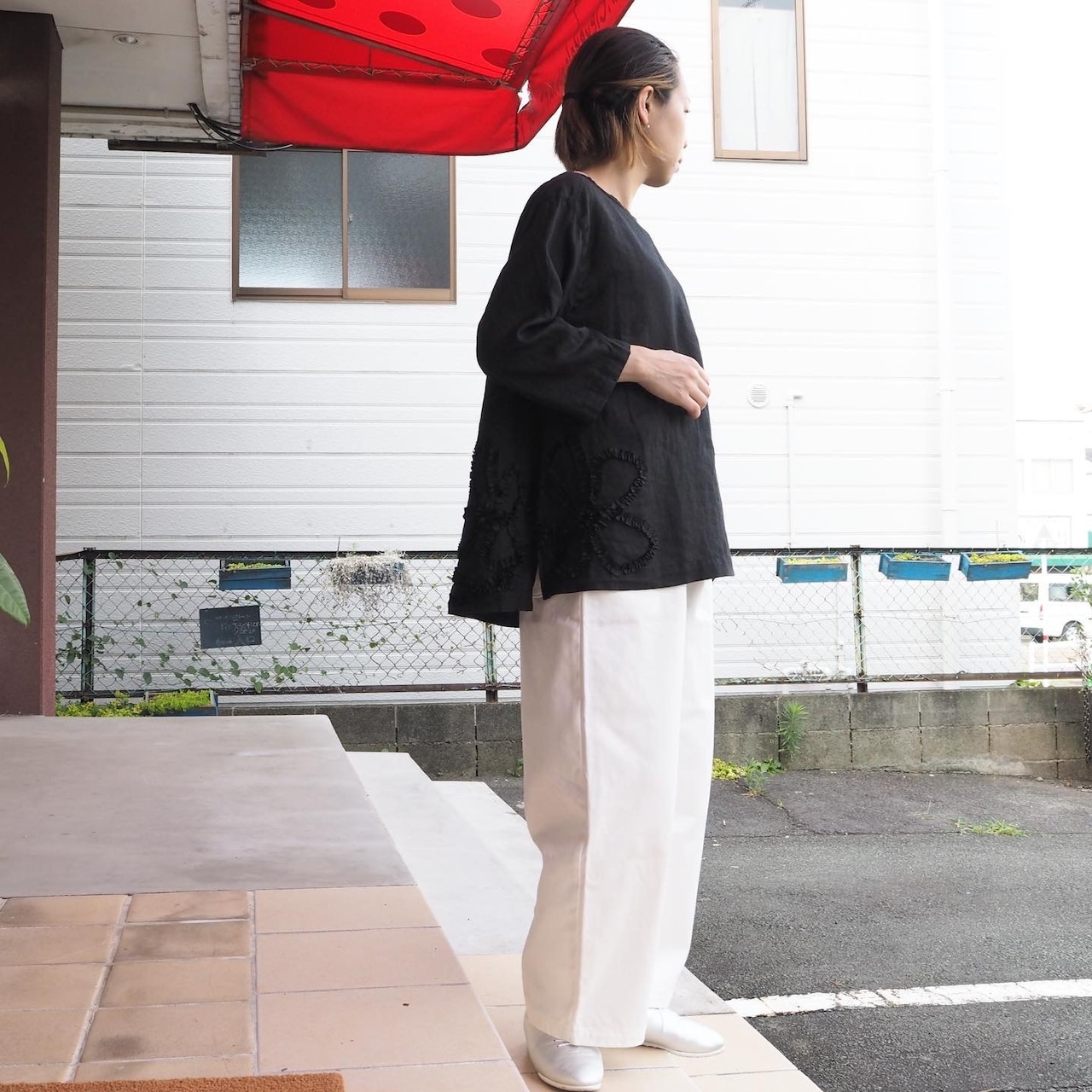 Iki - 150番Ramie/Linen テープ刺繍プレーンブラウス