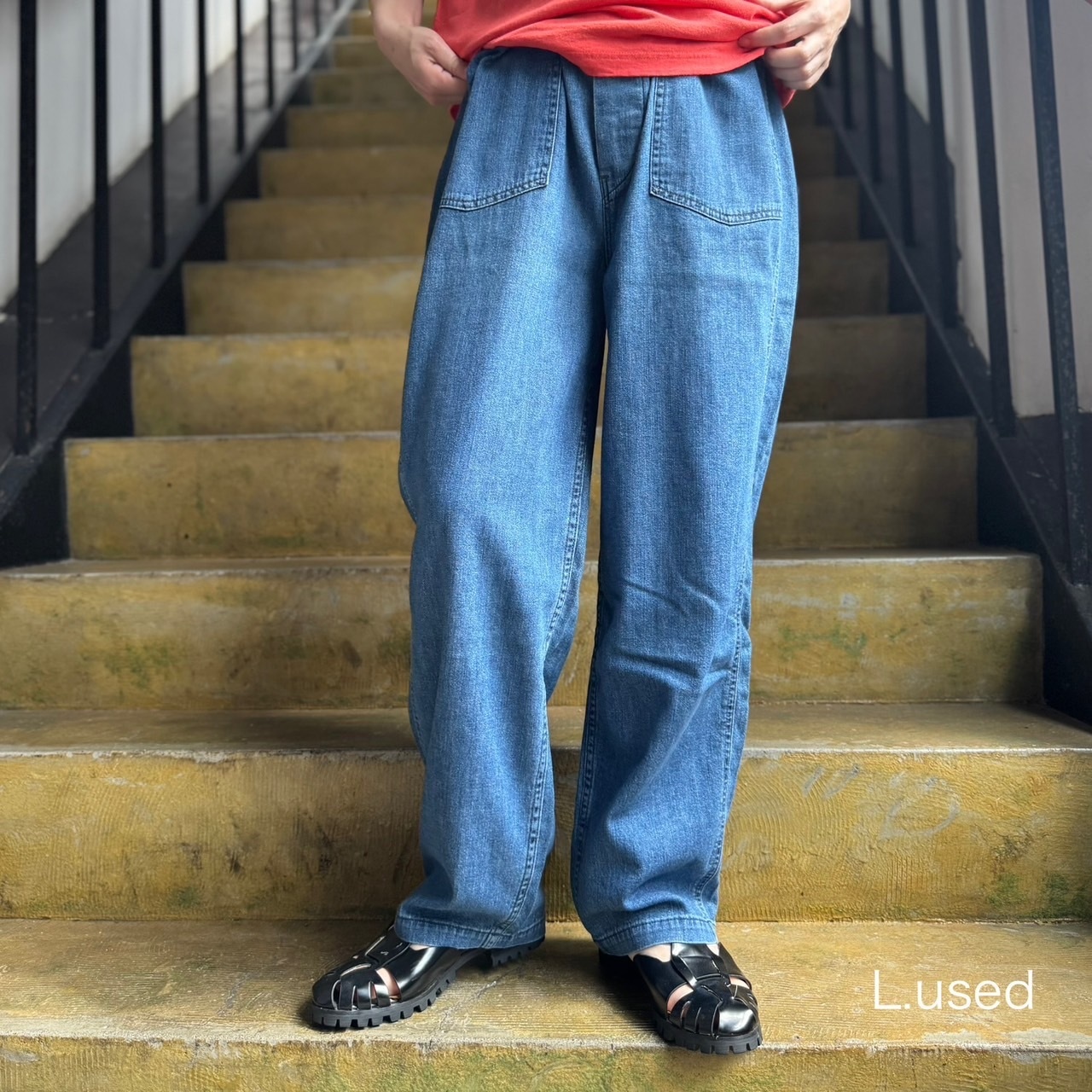 OMNIGOD - 7oz甘織りデニムPWイージーテーパードパンツ(L.USED)