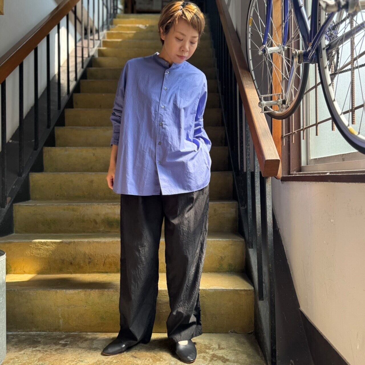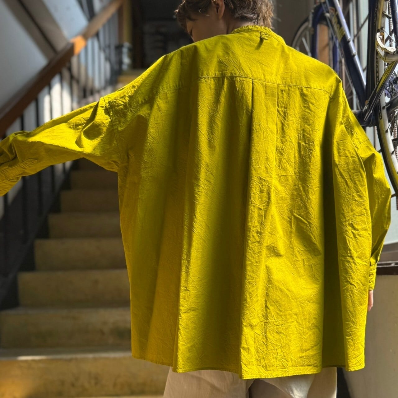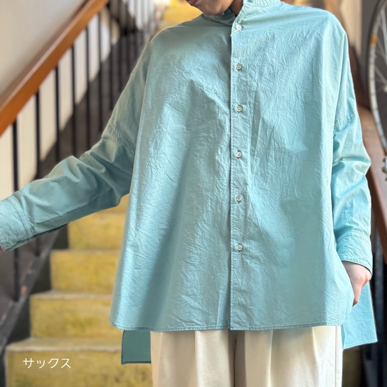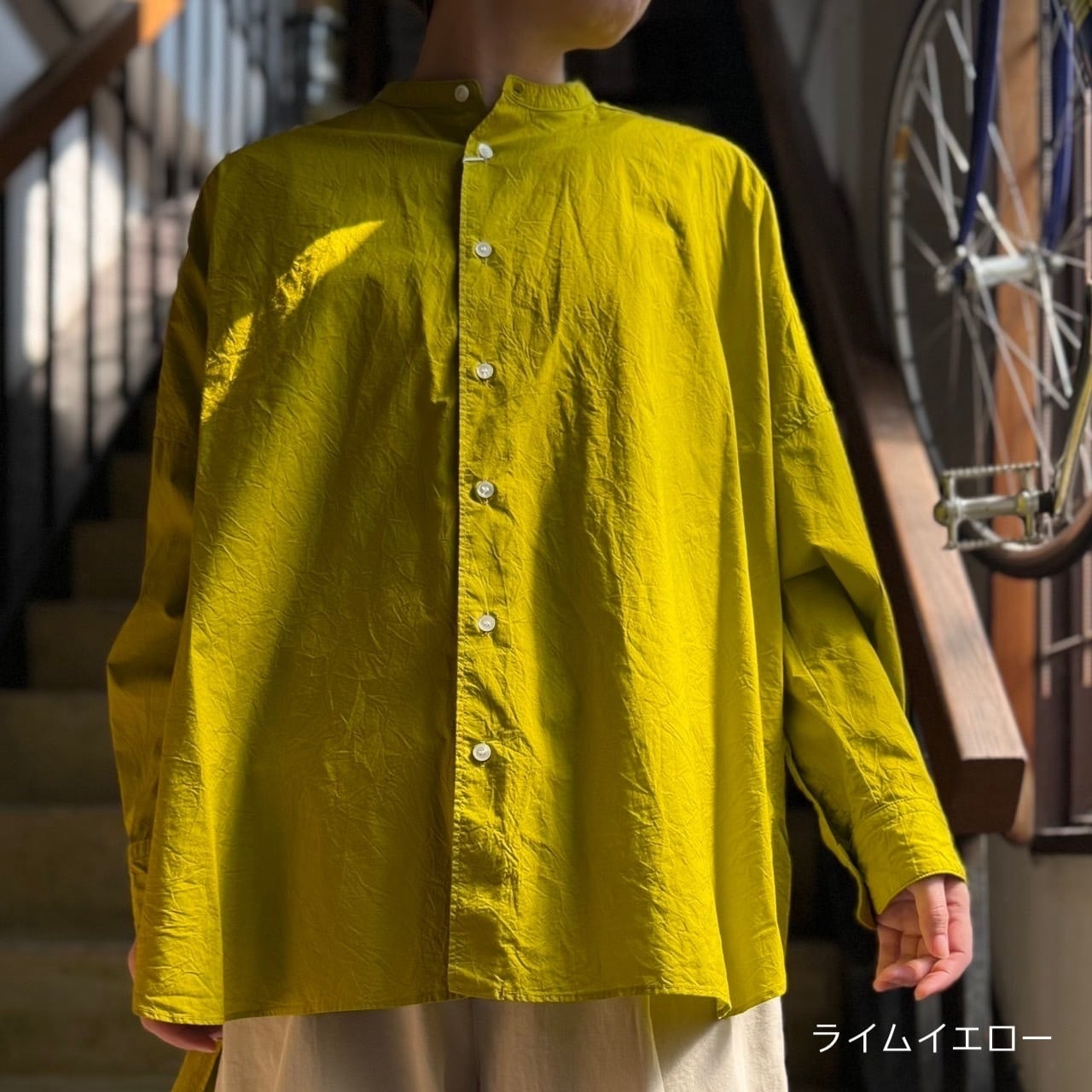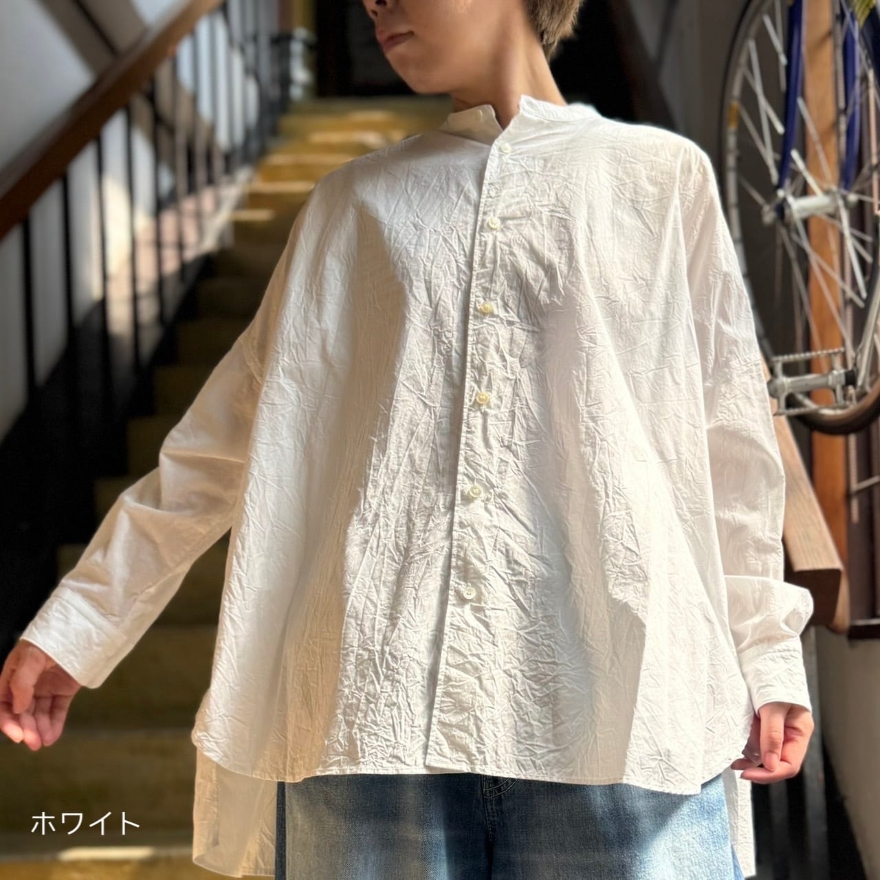 肌当たりの良い綿素材をあえてシワ加工させた雰囲気の良いざっくりシャツは