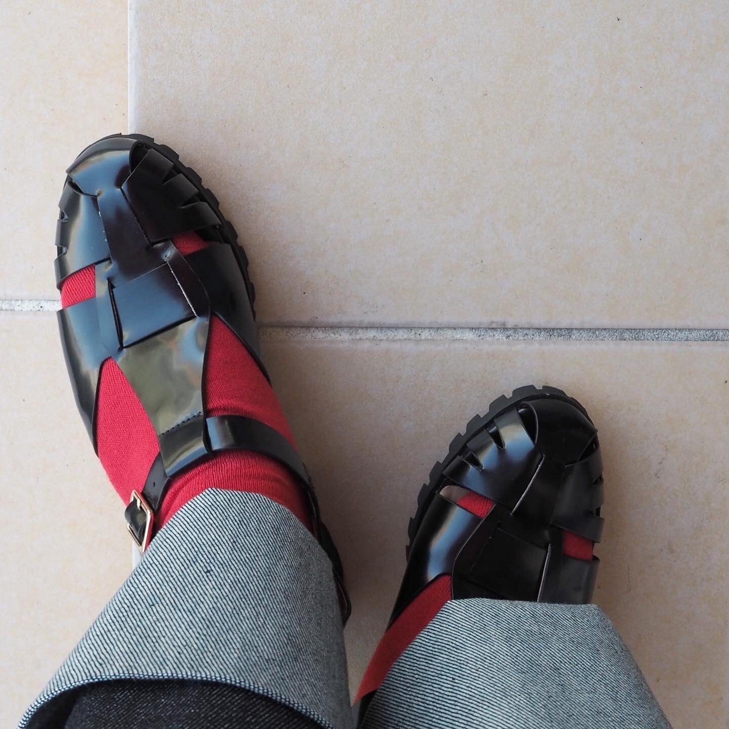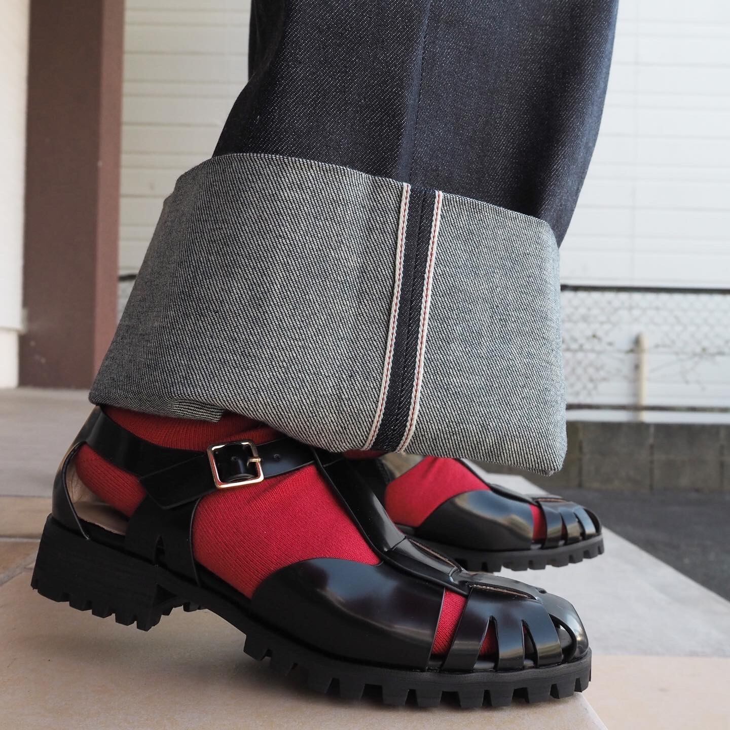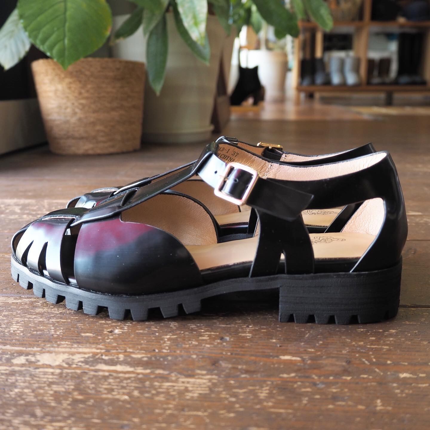 ガラスレザーとゆう艶のあるレザーを使った上質サンダルです。