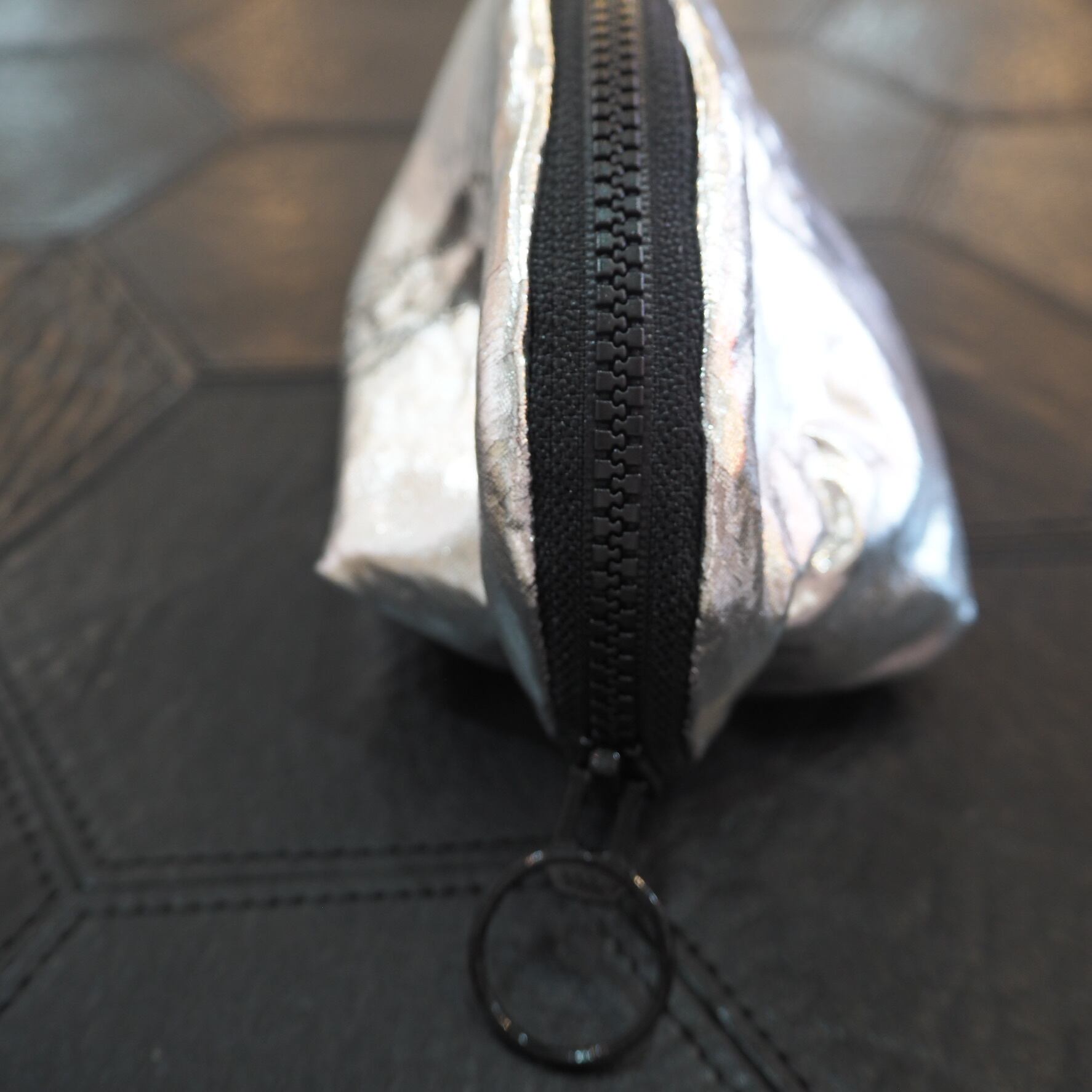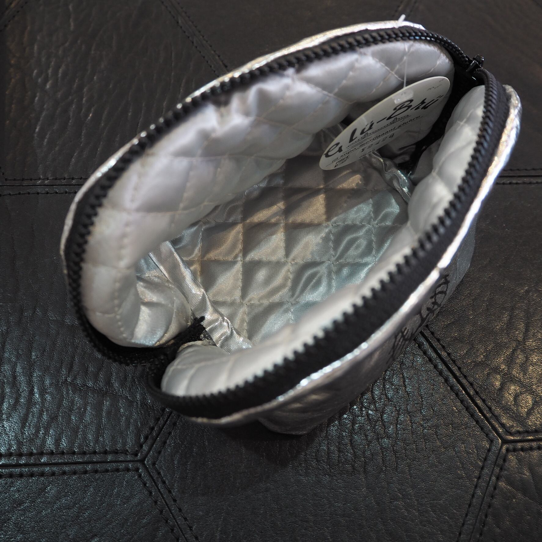 ストレッチ生地のメタリックカラー生地のシェル型ポーチのコンパクトな小さめです。