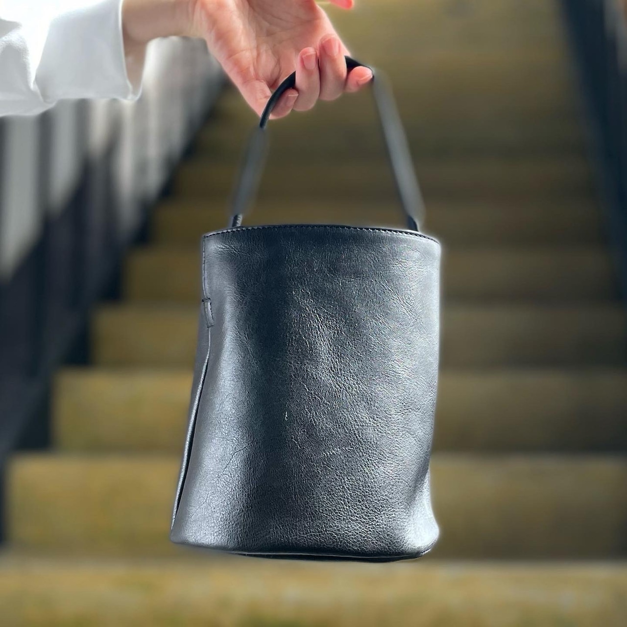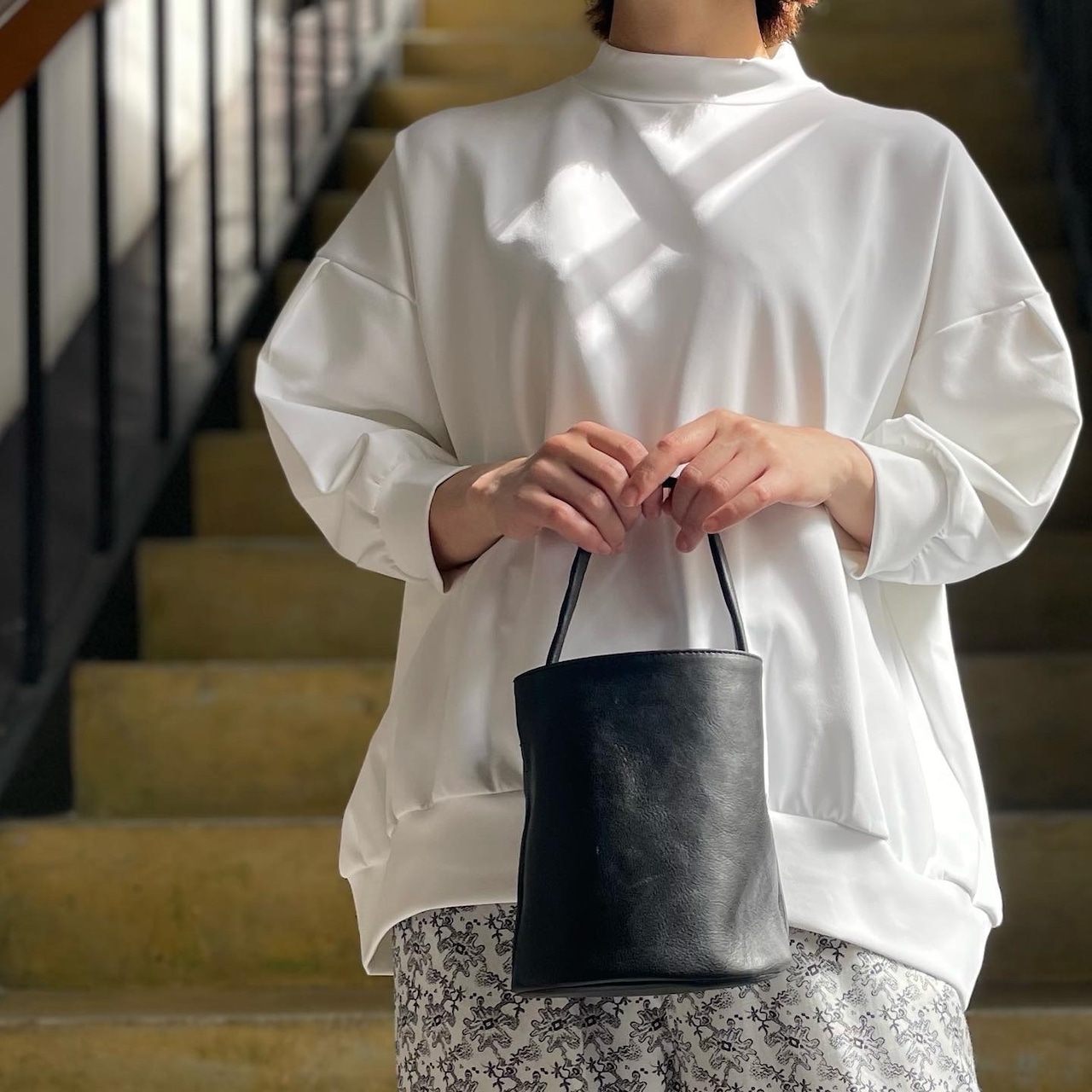 筒型でファスナーや釦などの留め具なしのシンプルなバッグです。