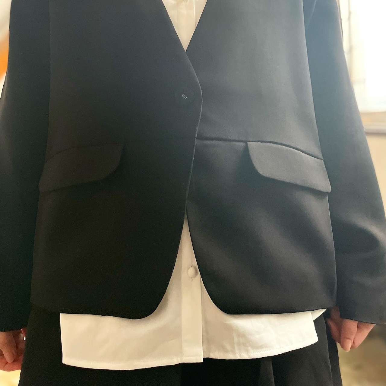 女性らしいナチュラルなシルエットでラクに着ていただけるジャケットとなっています。